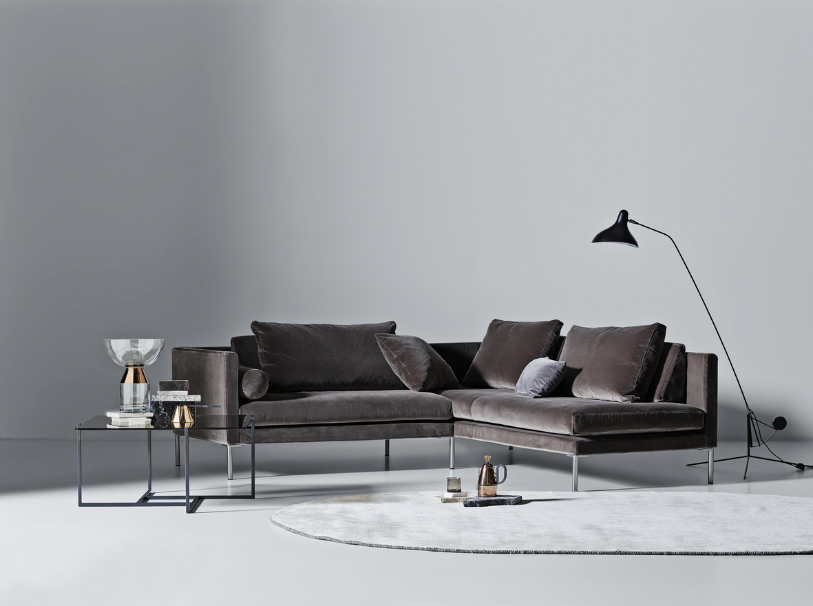 The 701 is a modular system focused on a few core elements to create larger arrangements, including corner sofas.