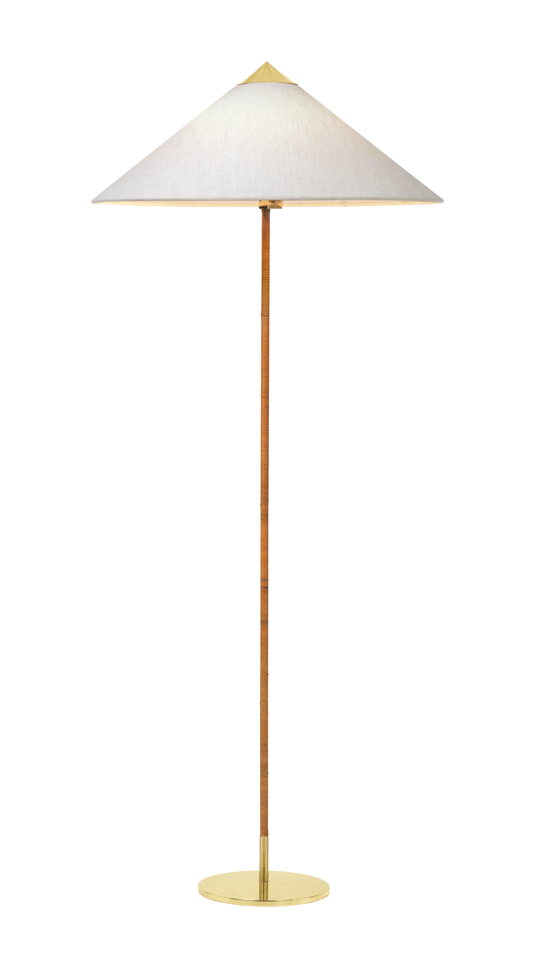 The 9602 Floor Lamp, also known as “Chinese Hat,” was designed by Paavo Tynell in 1935. Characterized by its elegant and airy lampshade and rattan-covered stem, it shows the designer’s boundless imagination and unparalleled ability to create designs of enduring beauty, perfectly suited for creating a gentle ambient light.