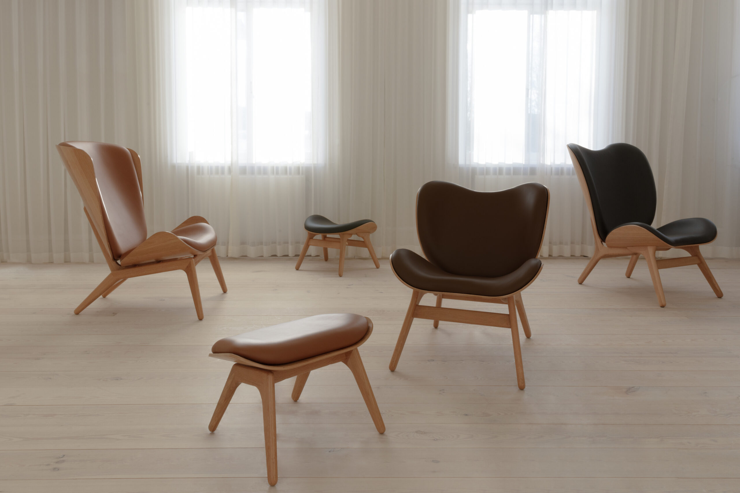 A Conversation Piece is available in a low or tall version – inviting you to settle in, slow down and enjoy relaxed moments with its gently sculpted form and warm organic presence. Designed as a lounge chair that feels welcoming from every angle, it works beautifully in living rooms, bedrooms, or cosy reading corners. The curved silhouette offers a soft enveloping feel and the low profile adds a calm elegant touch to modern Scandinavian interiors. Available in oak, dark oak, or black oak frames, the chair can be tailored with a wide range of upholstery options. The wide array colours and textures make it easy to create a look that feels personal and timeless. One of its smartest features is the interchangeable upholstery which lets you refresh the chair as your style evolves. Durable well crafted and designed to grow with you, A Conversation Piece becomes a favourite spot for everyday comfort.