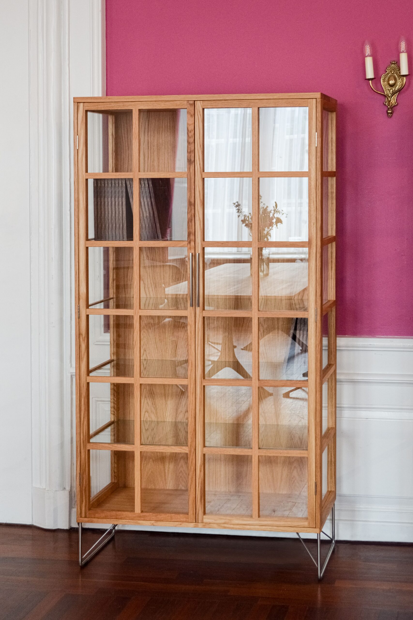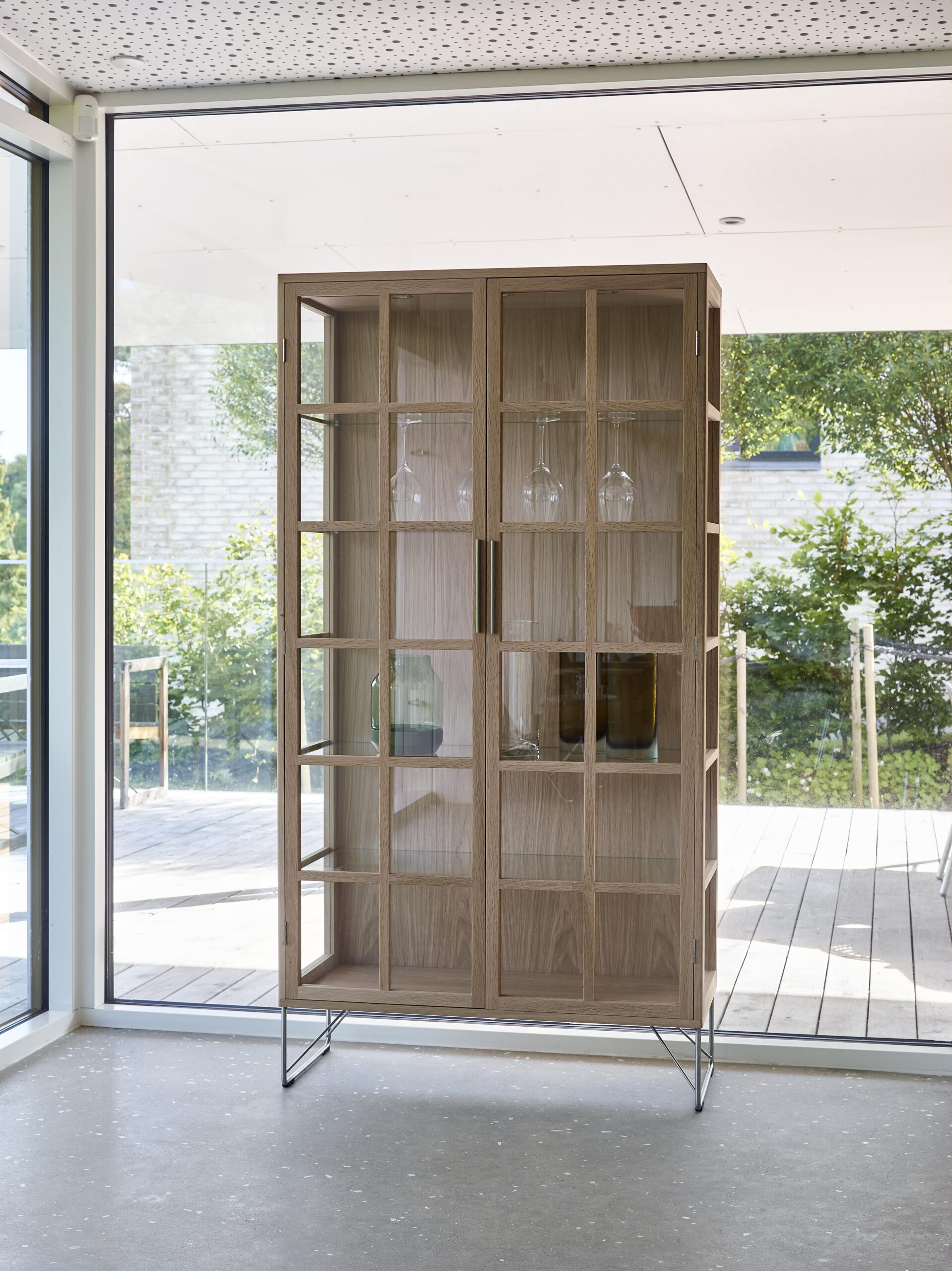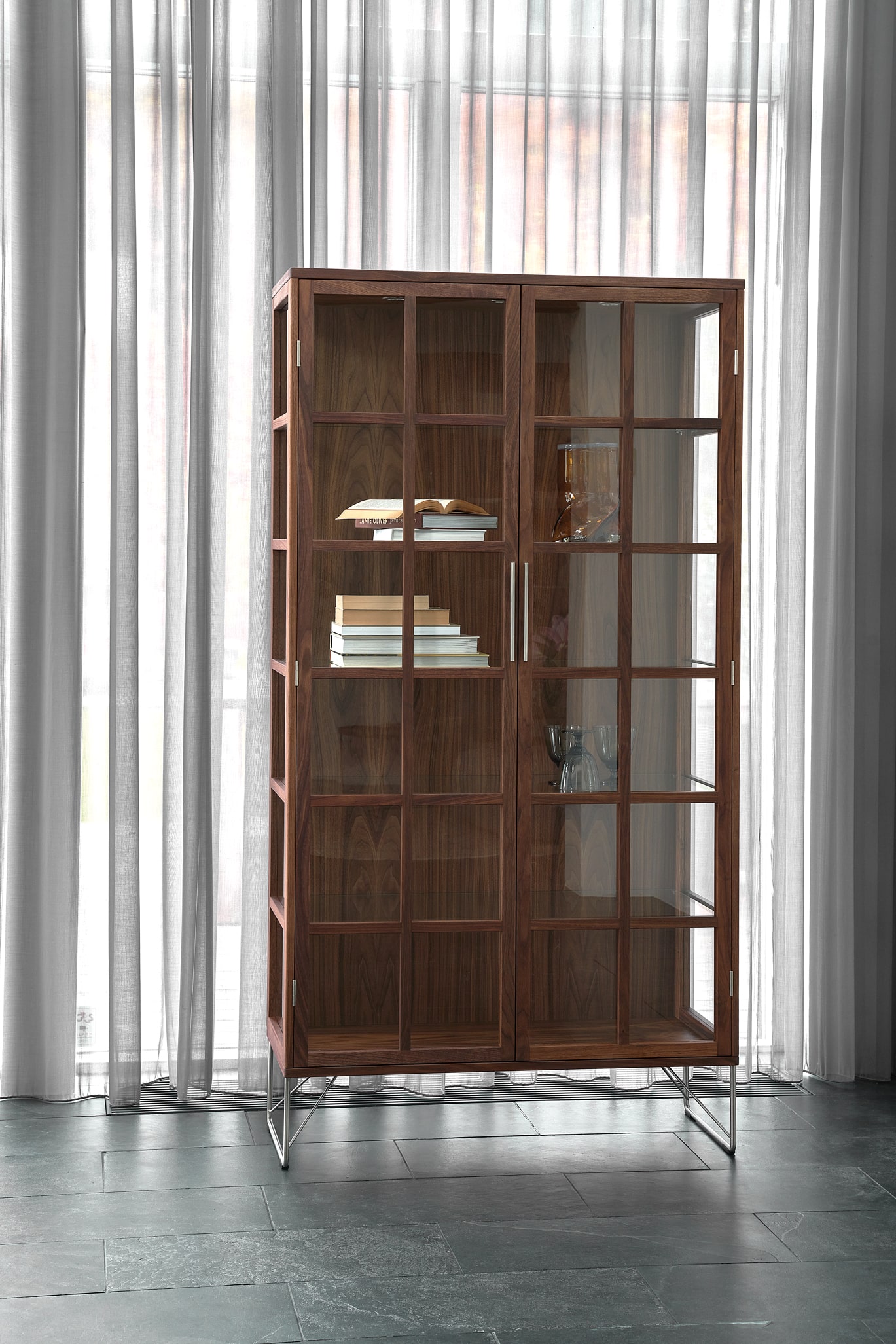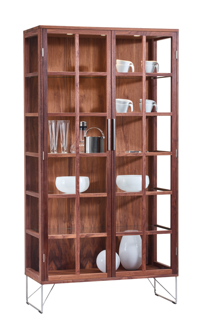 The AK 2780 is a modern reinterpretation of the classic China cabinet, featuring glass panels on three sides and brushed steel legs to create an airy, light-filled stage for your most treasured objects.