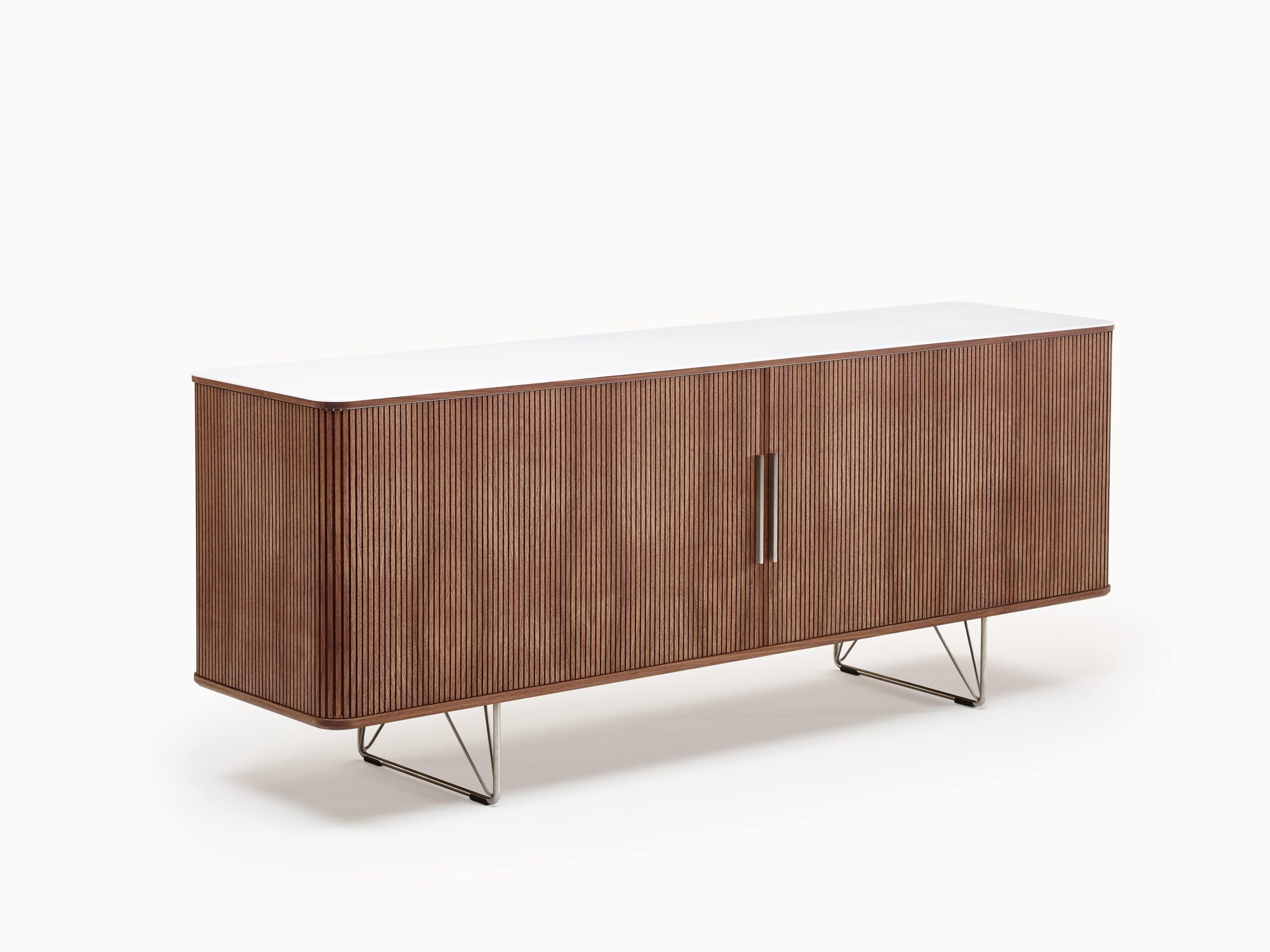 The AK 2730 Sideboard by Naver Collection is a timeless Scandinavian storage piece that blends classic craftsmanship with a fresh modern expression. Its smooth Corian top feels cool and refined while the stainless steel base lifts the cabinet lightly from the floor creating an elegant floating impression.