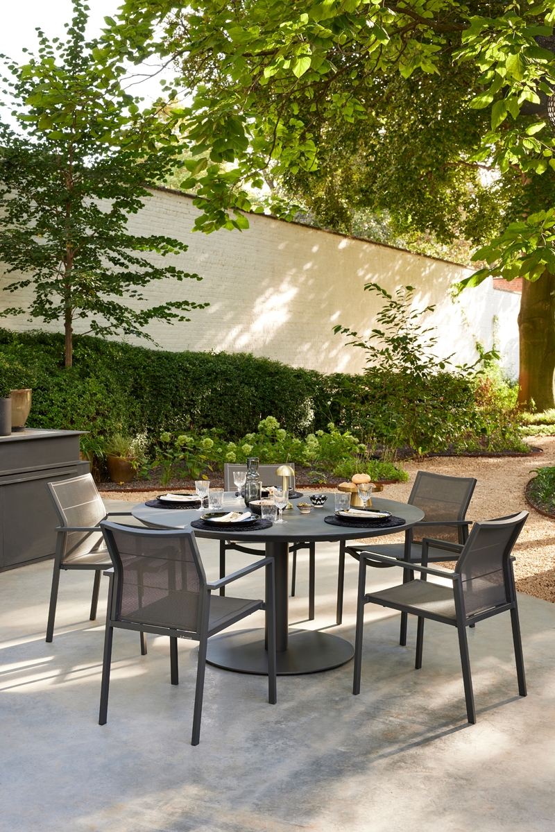 A silky Textylene® sling finish brings a softly responsive seat that needs no cushion. Choose between three different colours. This piece works beautifully in outdoor dining setups, holding up to heat, humidity and everyday spills with easy care durability.
