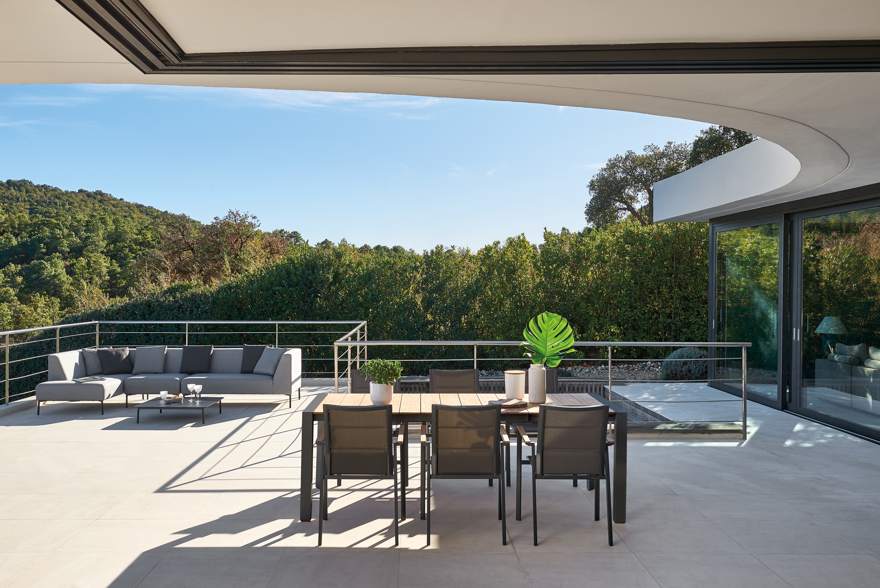 The frame pairs naturally with many different tables, especially with the Alexa Dining Table from the same collection. Alexa becomes a preferred choice for those who wish to elevate the experience of their outdoor space.