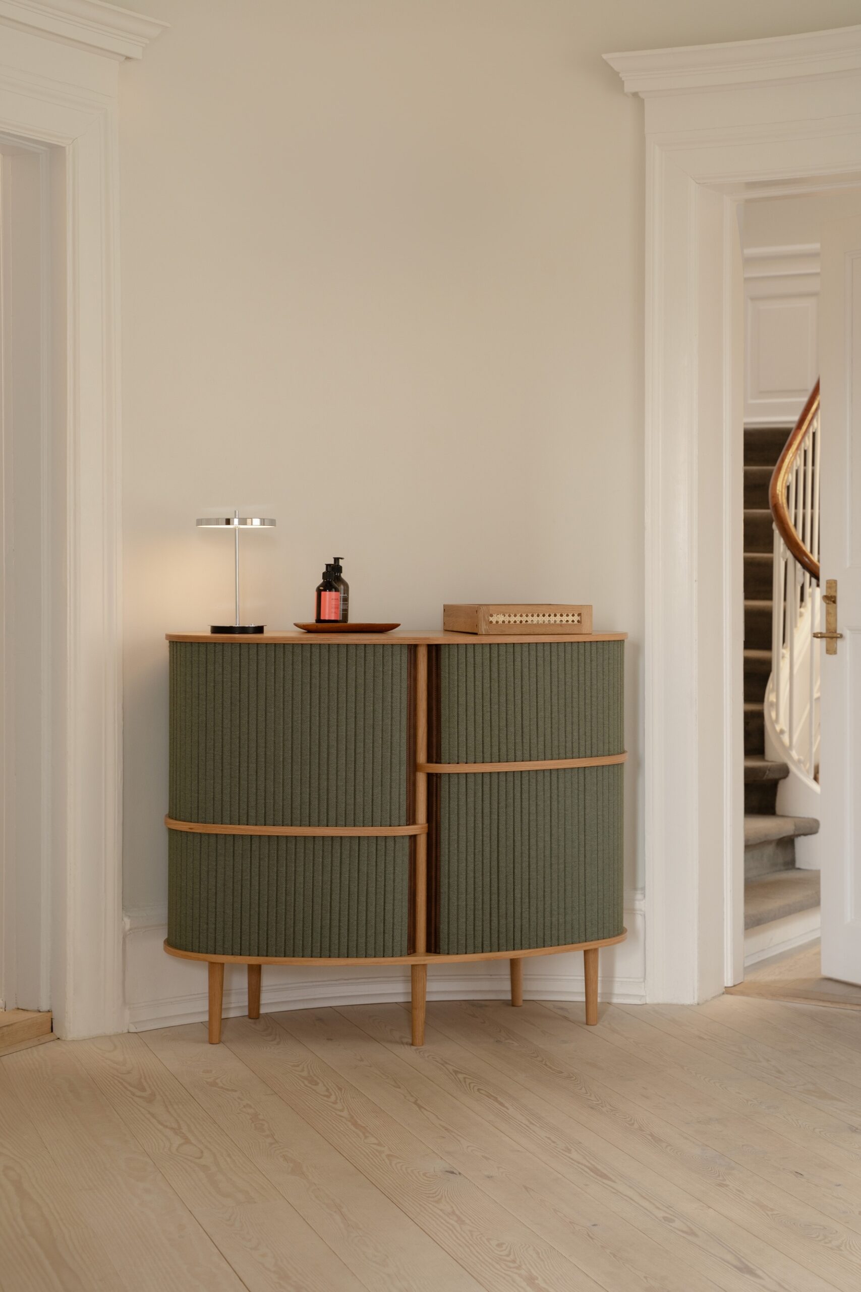 The Audacious Highboard brings a warm Scandinavian elegance to your home with a design that feels both nostalgic and refreshingly modern. Its smooth sliding tambour doors add charm while revealing a generous interior with two spacious shelves perfect for storing everyday items you prefer to keep neatly out of sight.