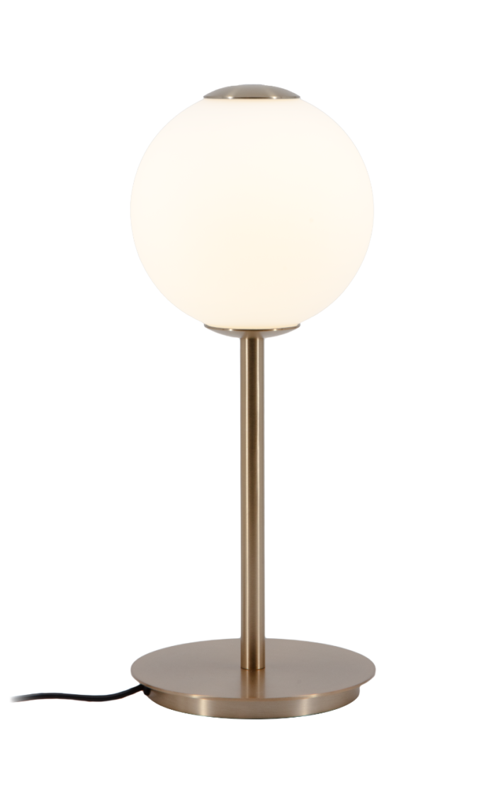 The Audrey Table Lamp is a quietly luxurious lamp with mouth-blown opal glass globes that glow like pearls, casting warm diffused light in a slim, contemporary silhouette.