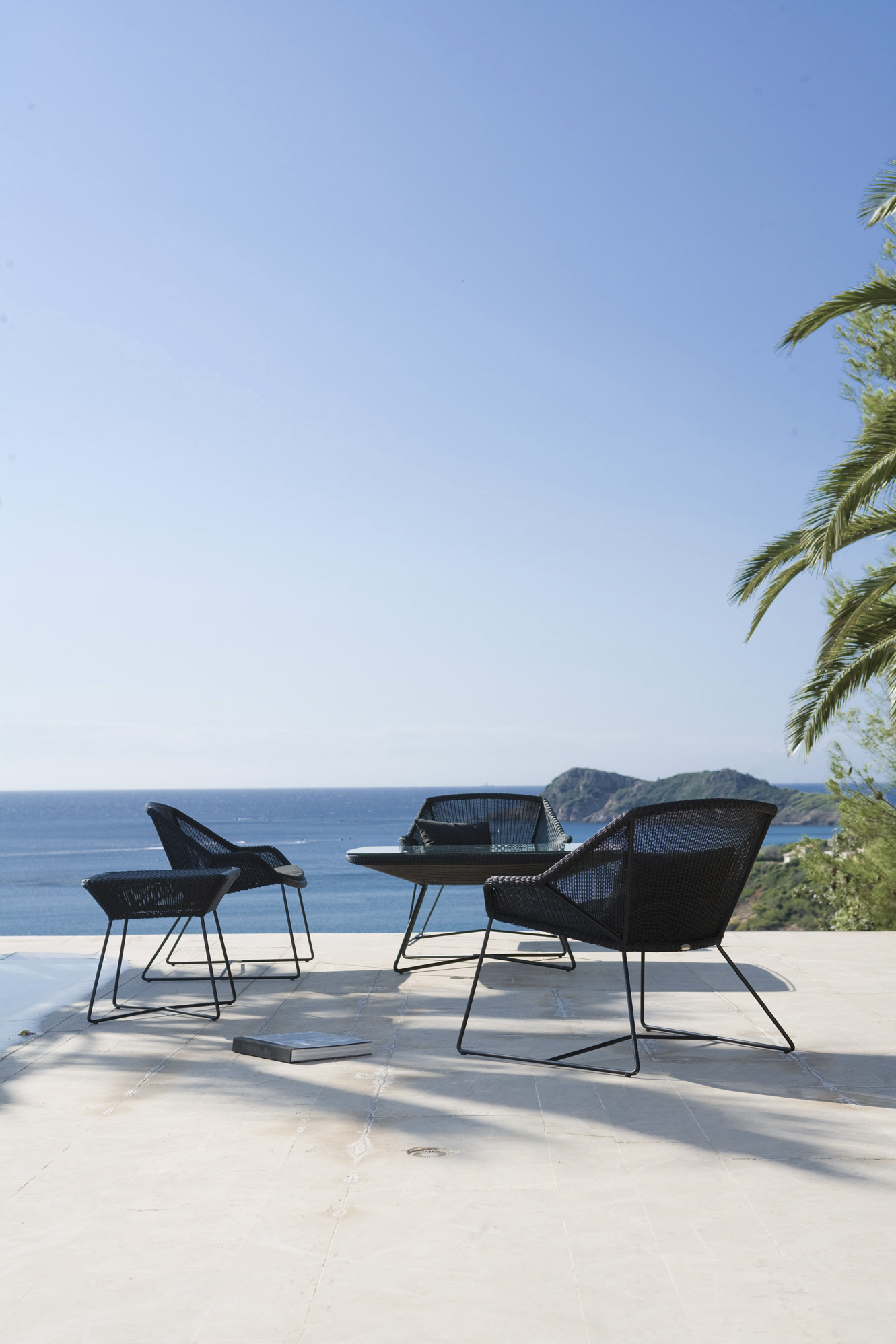The Breeze Outdoor Lounge Chair brings a timeless modern elegance to any outdoor setting. Designed by the Danish duo Strand and Hvass this piece showcases a sleek sledge inspired silhouette that gently cradles the body. The airy Cane line Weave creates a beautifully transparent look while offering surprising softness and tactile comfort as you settle in.