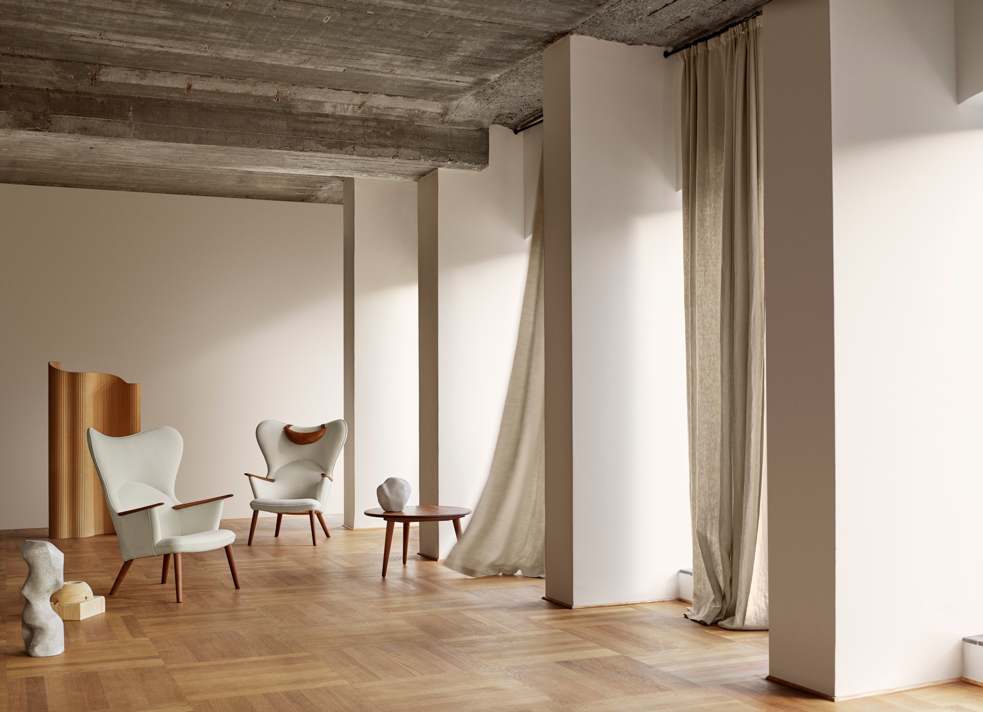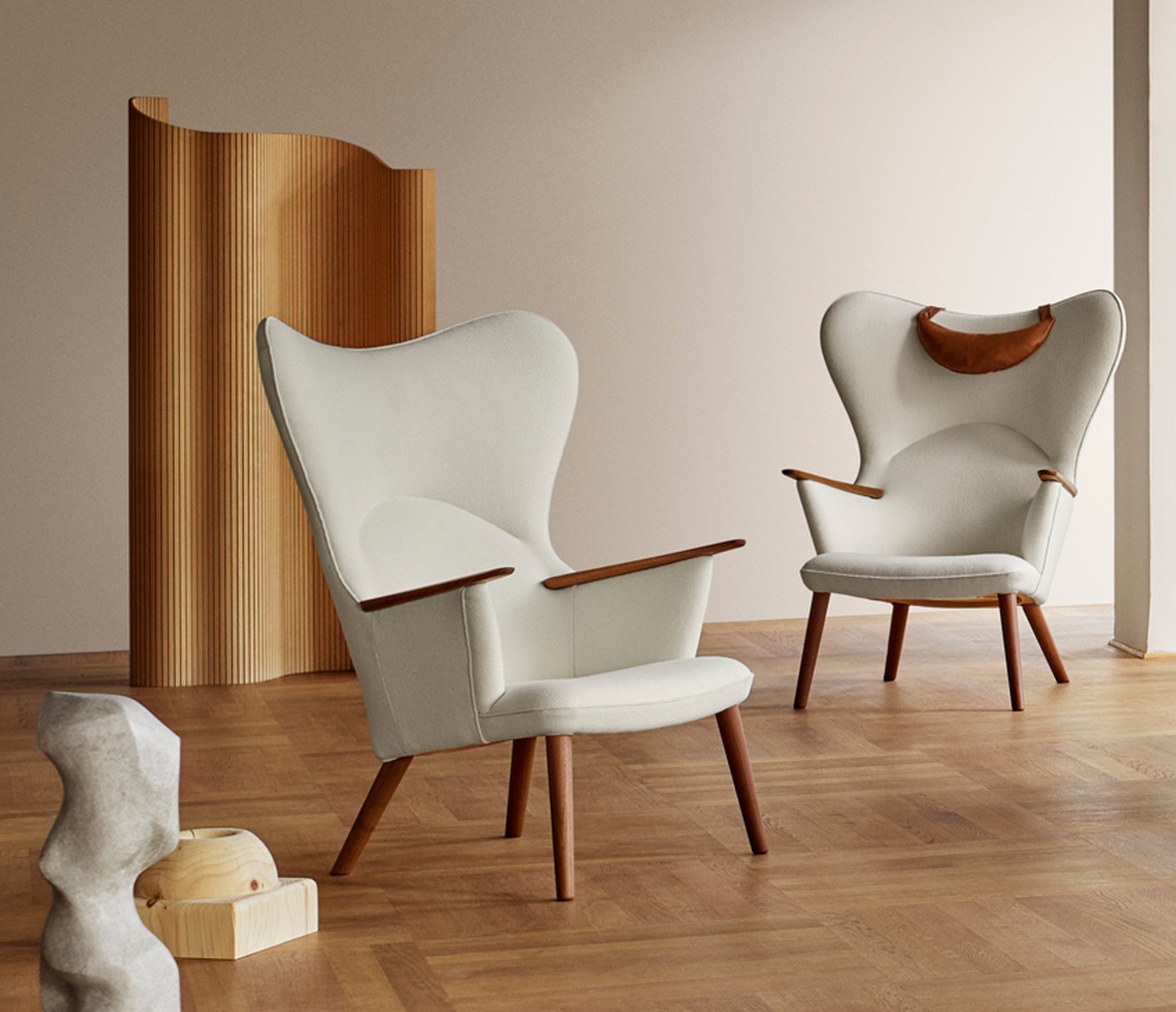 The CH78 Mama Bear Lounge Chair is a warm and welcoming icon of Danish design. Its sculptural silhouette is shaped by gentle curves that feel almost like an embrace, offering a soothing place to unwind. The solid FSC certified wood frame provides natural strength while the elegantly rounded armrests and tapered legs add a refined lightness to the overall form.