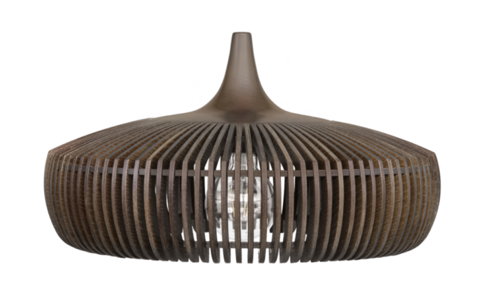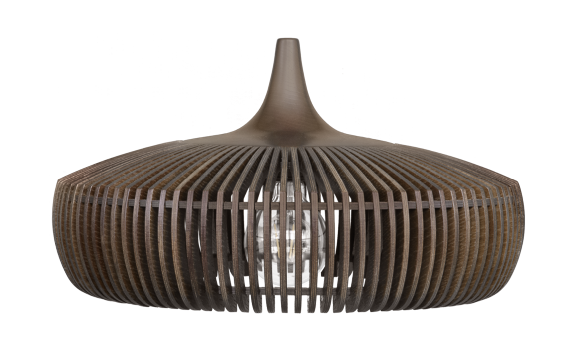 The Clava Dine Wood showcases UMAGE’s mastery of woodcraft. The small distance between each lamella requires extreme precision, resulting in a shade that creates a captivating flash of light on surrounding walls. Whether on or off, its organic shape and natural materials bring warmth to any room.