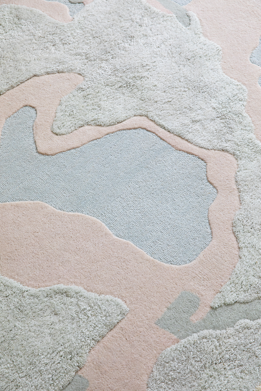 The Cloud Rug brings a playful artistic touch to your home with a design inspired by the shifting moods of the sky. Handwoven and handtufted from one hundred percent New Zealand wool, it uses varied pile heights and a boucle technique to create a soft cloud like texture that feels wonderfully inviting underfoot. The subtle rises and dips give the rug a sculptural quality that looks beautiful from every angle.