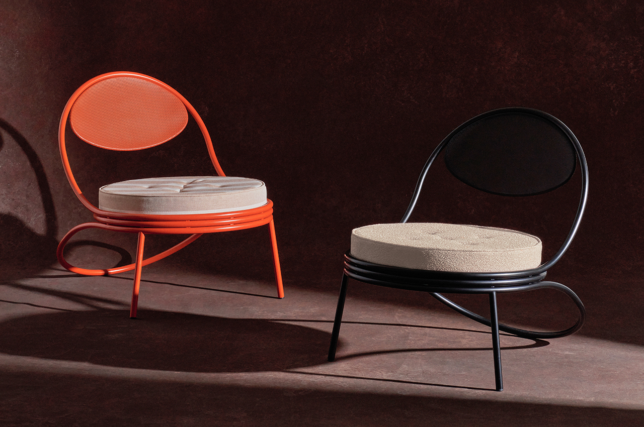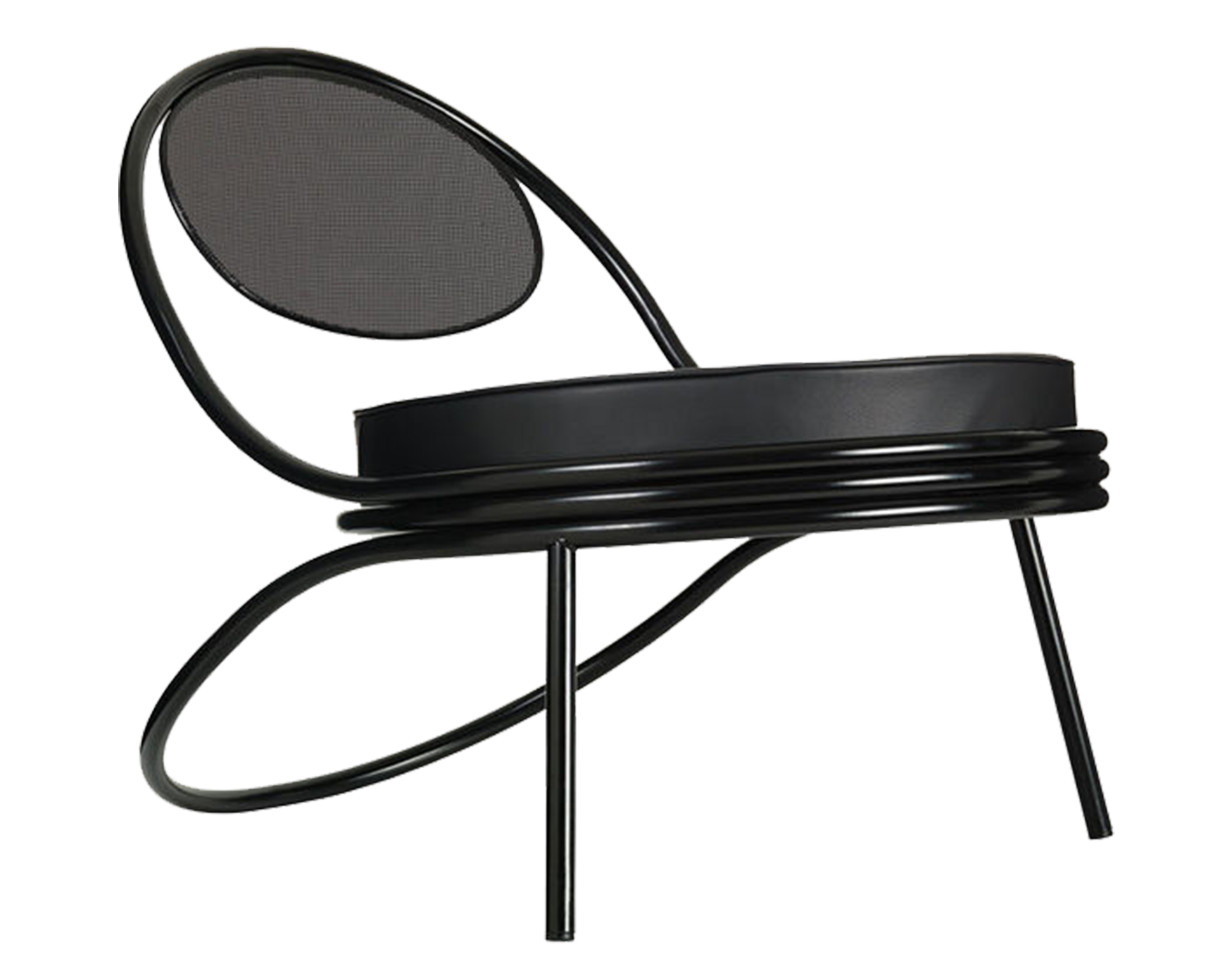 Designed in 1955 by French-Hungarian designer Mathieu Matégot, the Copacabana Lounge Chair is a timeless example of mid-century modern innovation. Its low, sculptural form appears as if drawn in a single continuous line, giving the chair a sense of lightness and effortless elegance. A curved tubular steel frame wraps around the circular seat and perforated Rigitulle metal backrest before extending into continuous rear legs. Available with black or orange frames, the Copacabana Lounge Chair is suitable for both indoor and outdoor use, depending on seat cushion upholstery, making it a versatile and enduring design classic.
