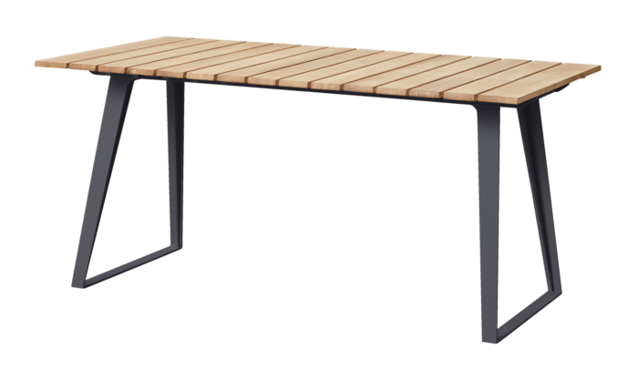 Outdoor-stable frame (aluminium or powder-coated steel depending on variant) + engineered tabletop core.