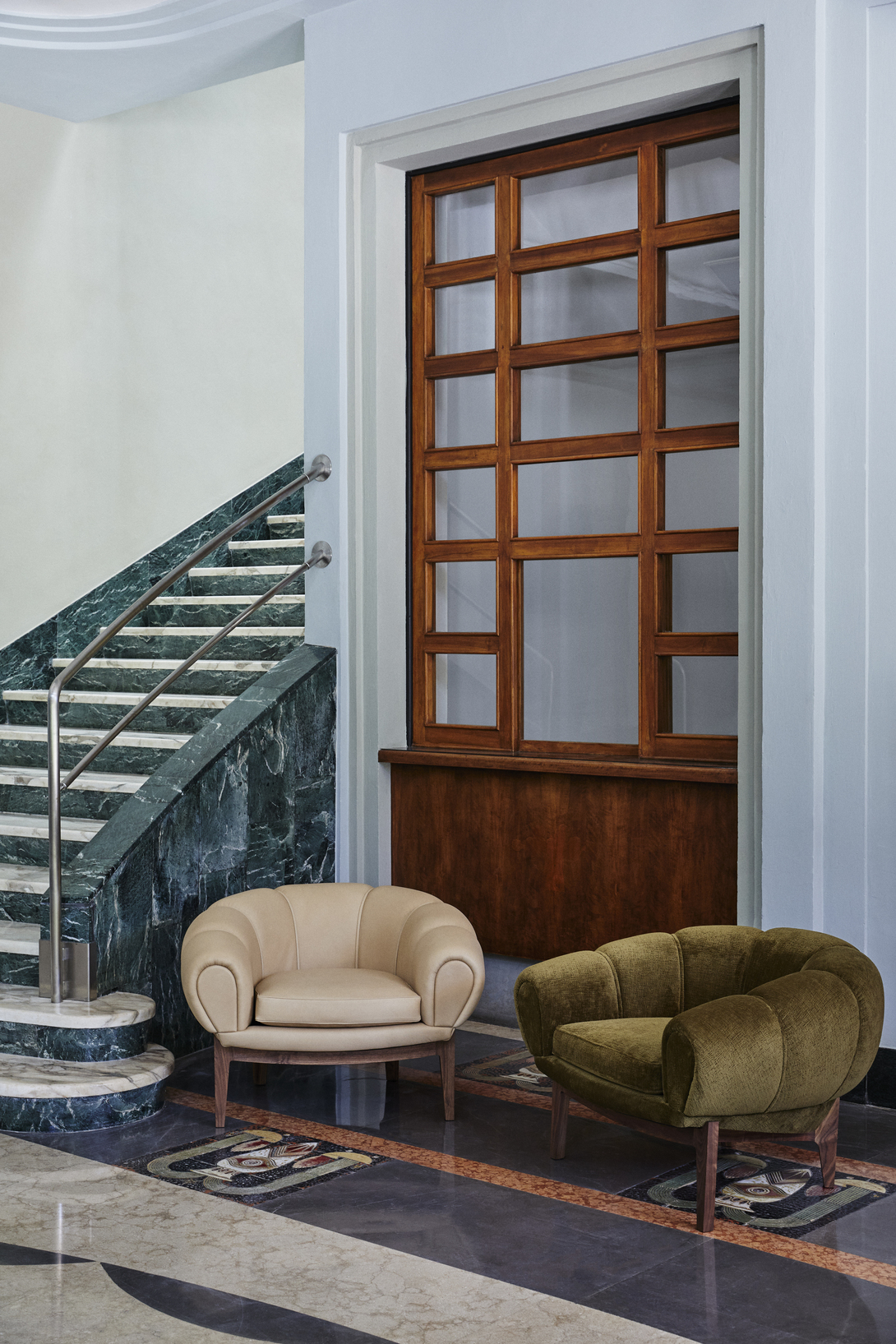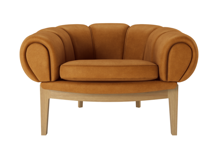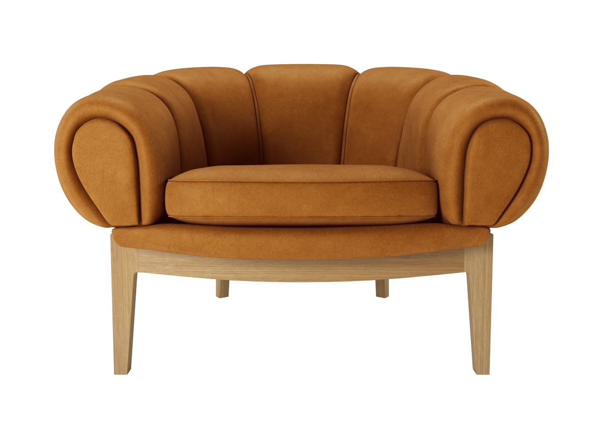 The GUBI Croissant Lounge Chair takes the formal stiffness of a traditional club chair and softens it into an irreverent, organic form. With its signature crescent shape it offers a deep, cocooning sit that feels as indulgent as the French pastry it was named after.