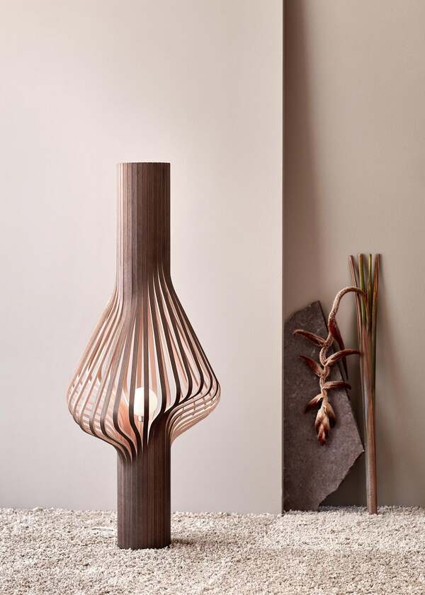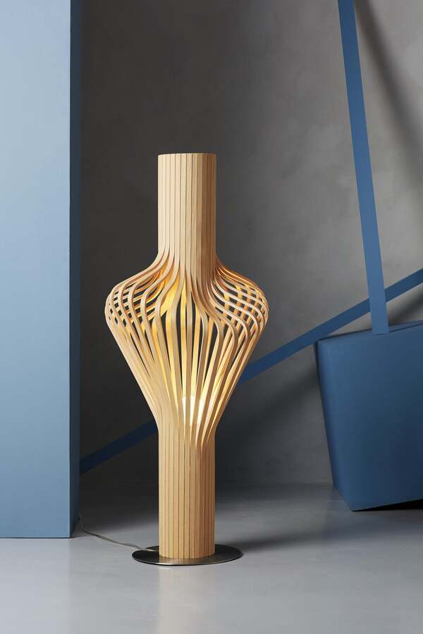 The Diva Floor Lamp brings a bold sculptural presence into any home with its distinctive spiralling shade and warm inviting glow. Designed to honour traditional Norwegian wood lamination techniques, this contemporary lamp is crafted from thirty two curved strips of plywood that create a fluid organic shape. The result is a piece that feels both artistic and modern, catching the eye from every angle.