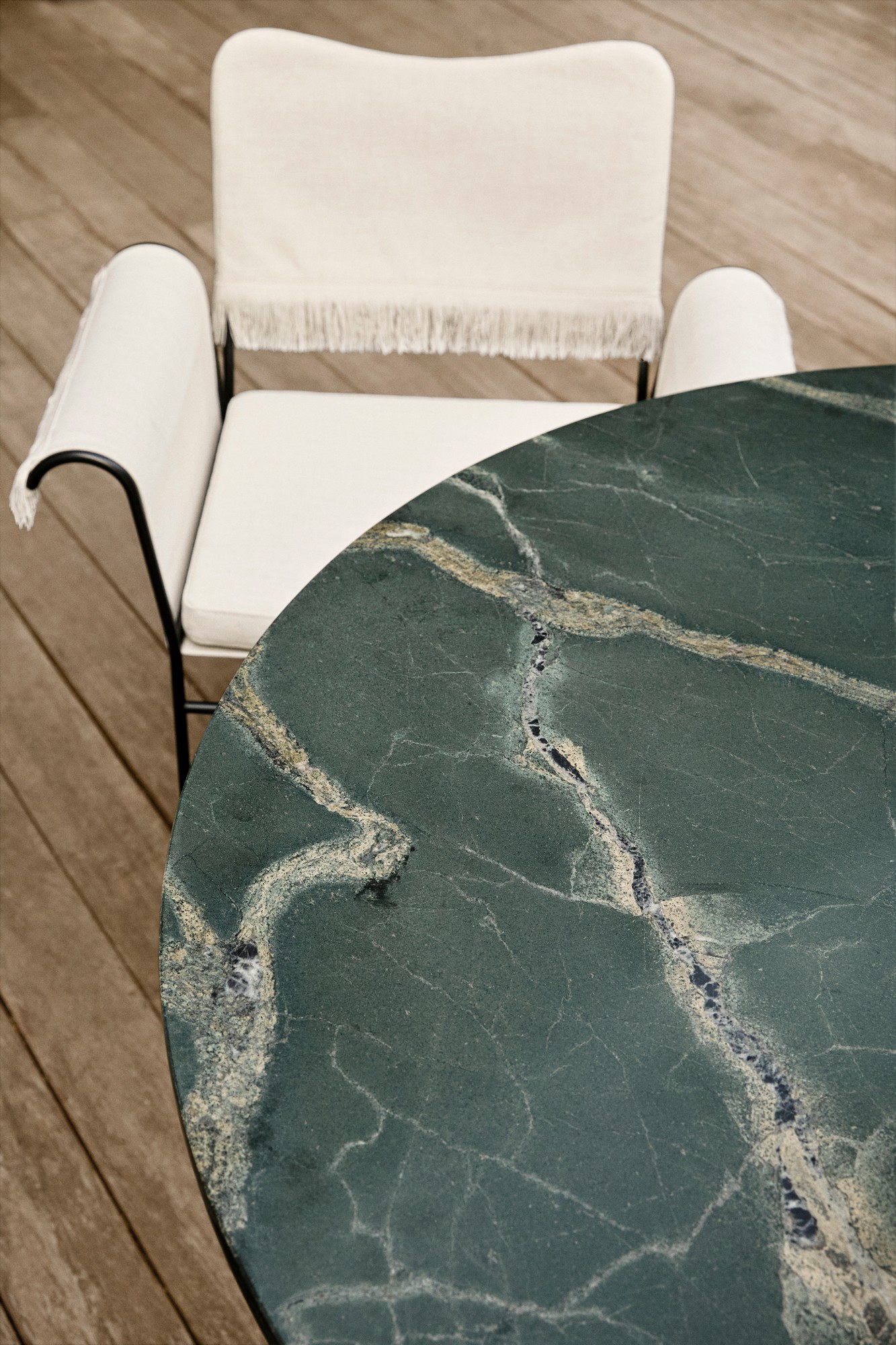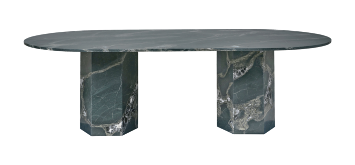 The GUBI Epic Outdoor Coffee Table is a high-performance evolution of the original indoor design that it swaps travertine for Quartzite. This material shift ensures the table can withstand the rigors of the elements while retaining its monumental, museum-quality aesthetic in a garden, terrace, or poolside setting.