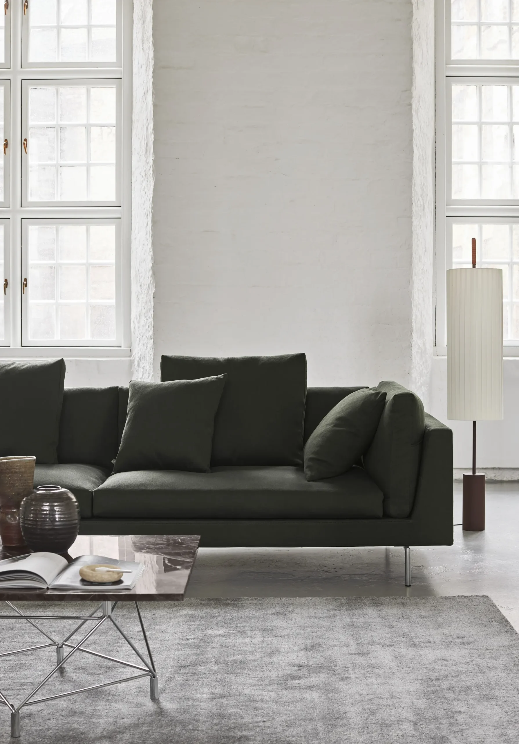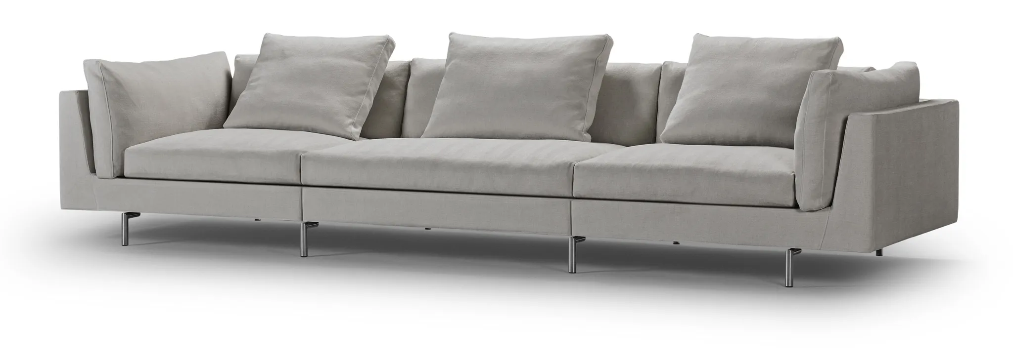 The Float High Sofa is a refined evolution of the original Float, lifted on slender steel legs with balanced proportions and down-filled softness for pure, elevated lounge comfort.