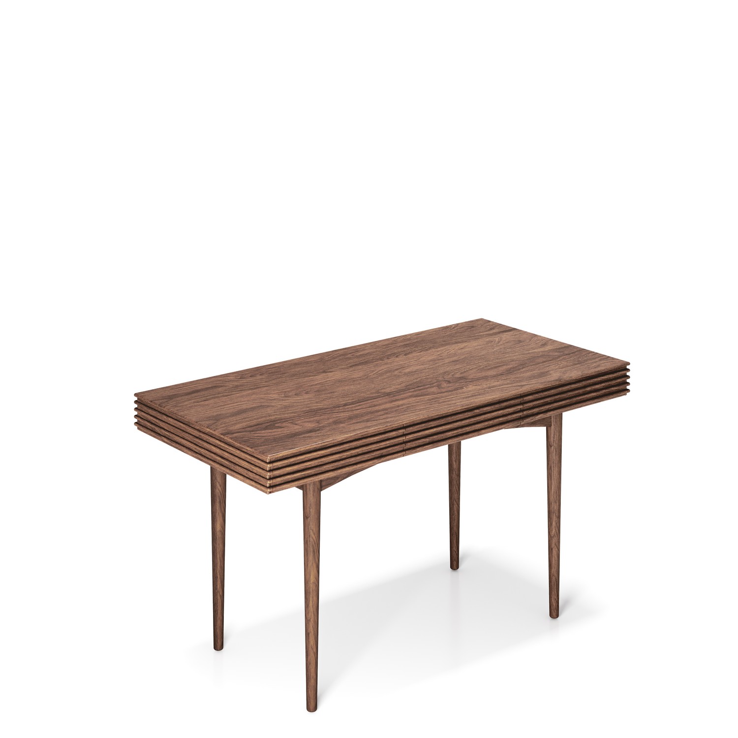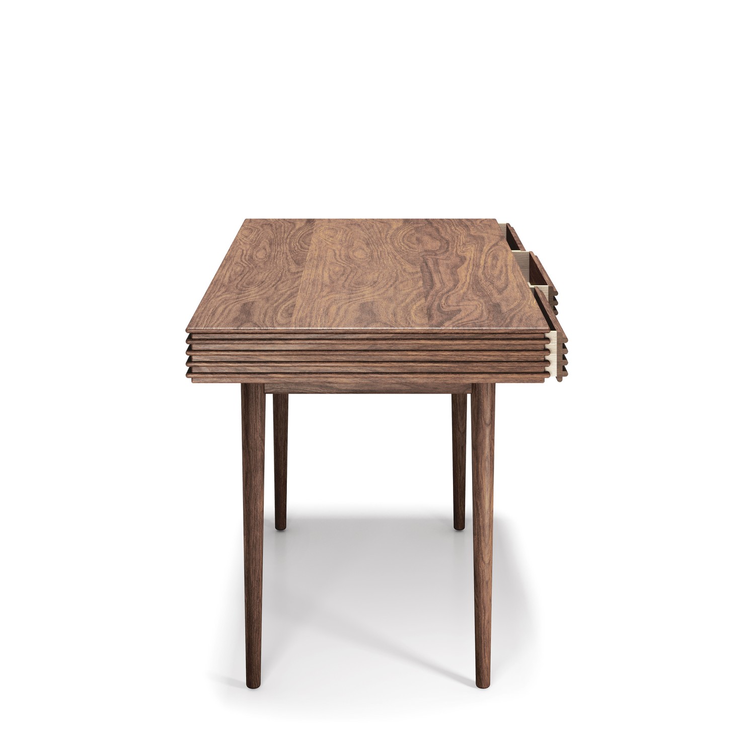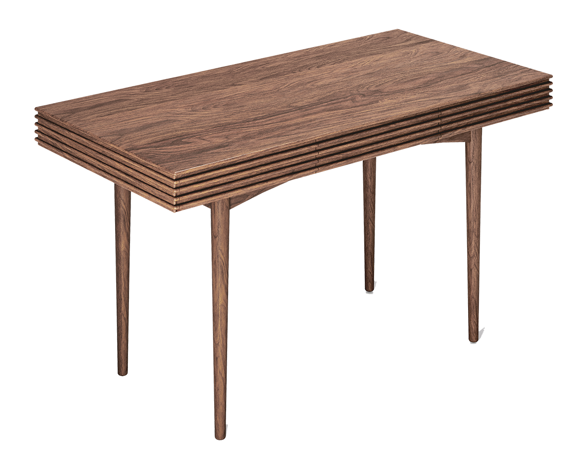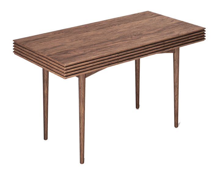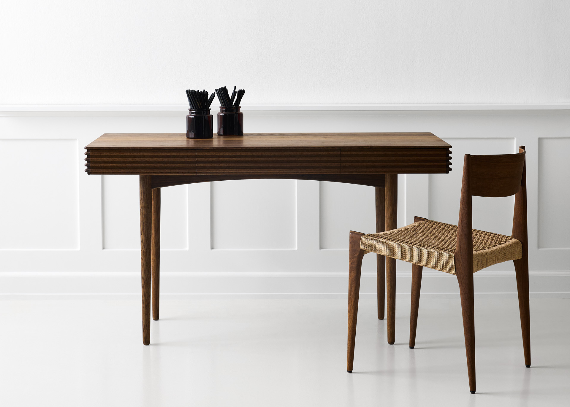 The Groove Desk is a refined solid wood workspace that combines sculptural detailing with discreet functionality.
