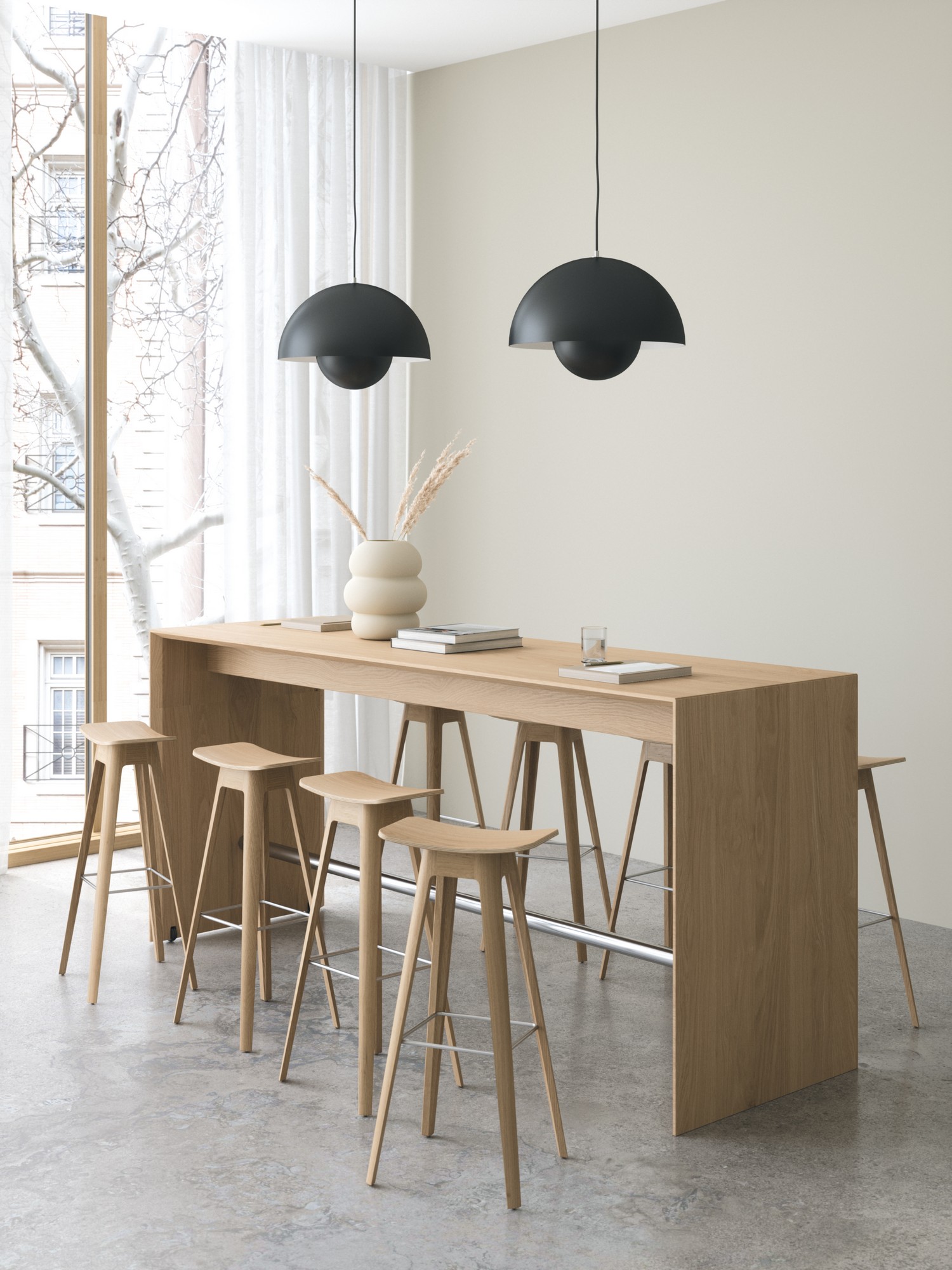 The HC1 Bar Stool by Andersen Furniture is a graceful blend of elegance comfort and Scandinavian simplicity. Designed by Anne Qvist this refined stool has a soft organic aesthetic that feels inviting the moment you see it. The gently curved seat offers a smooth supportive feel while the outward angled oak legs bring a sense of lightness to the room.