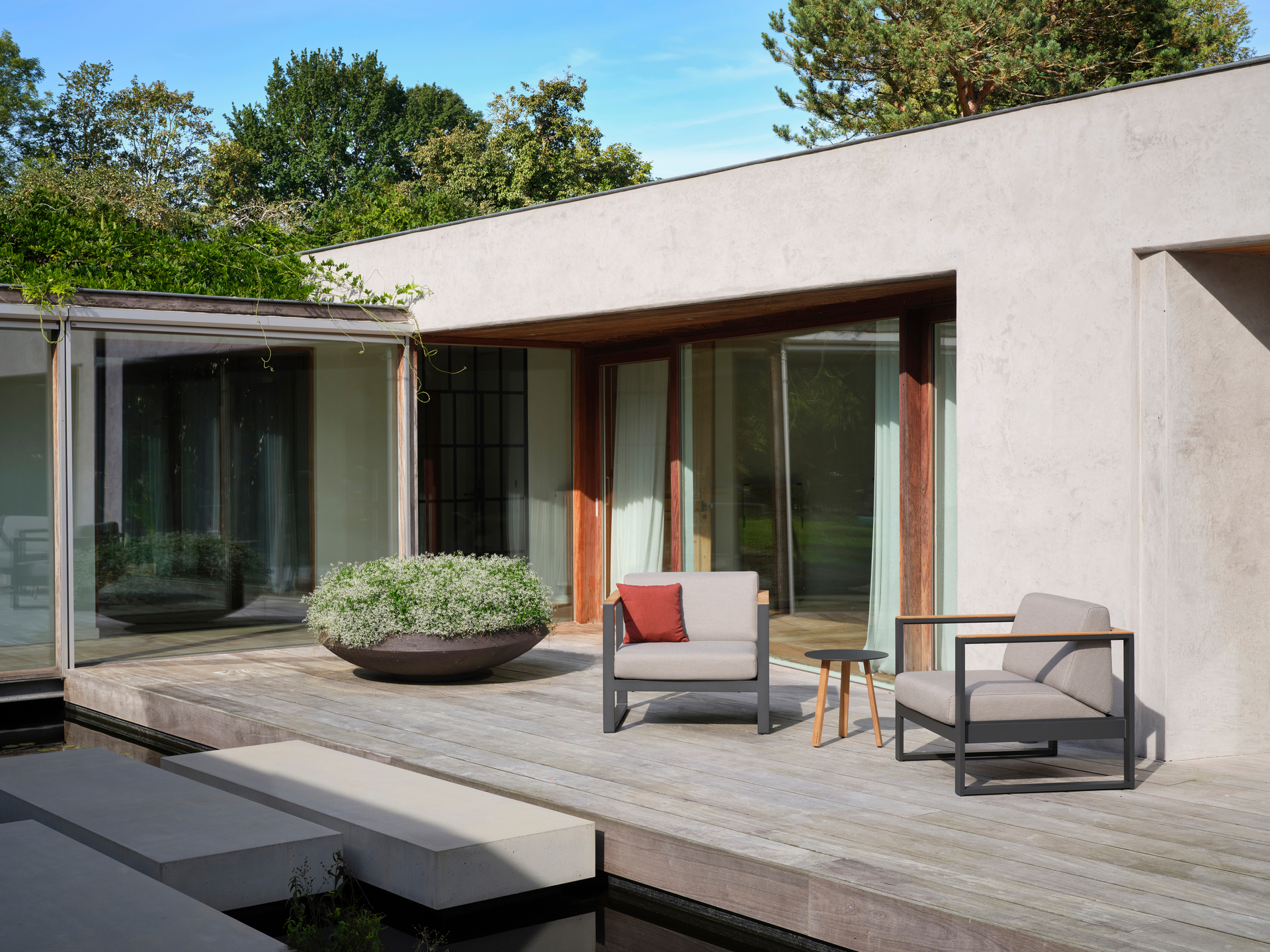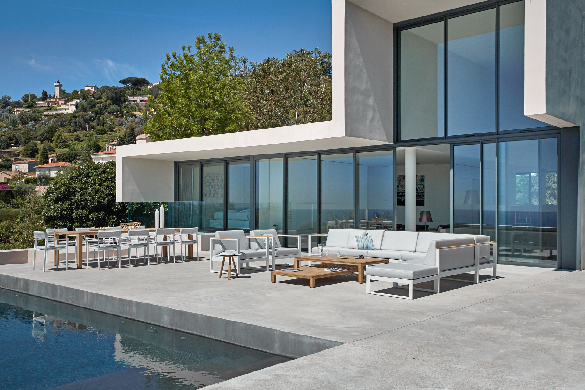 A sophisticated modular system with a floating aesthetic, designed for expansive outdoor living.