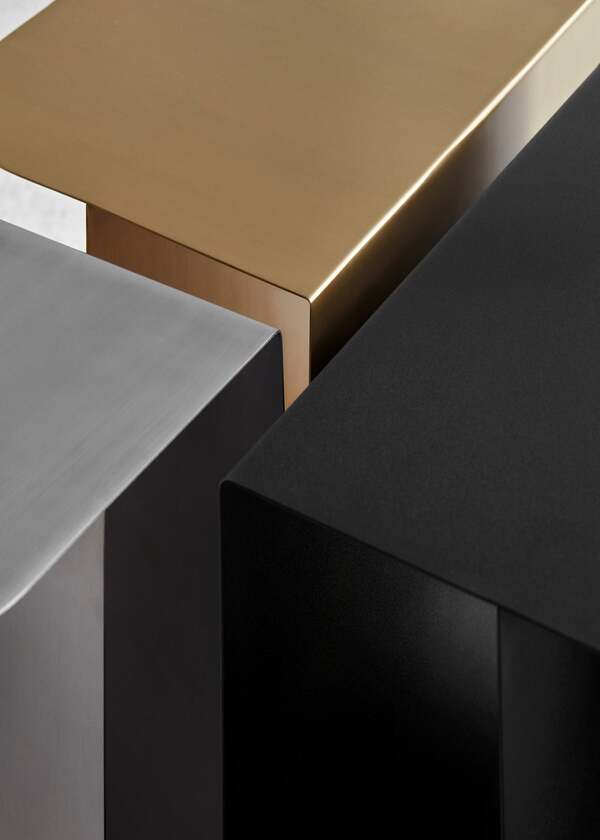 Formed from two folded sheets of metal, Mass has a clean architectural presence that feels modern yet easy to live with. Choose from brass stainless steel or a sleek black painted finish depending on the mood you want to create. Whether styled beside a sofa or used as a standalone accent piece, the Mass Side Table offers a perfect blend of artful minimalism practicality and contemporary Scandinavian style.