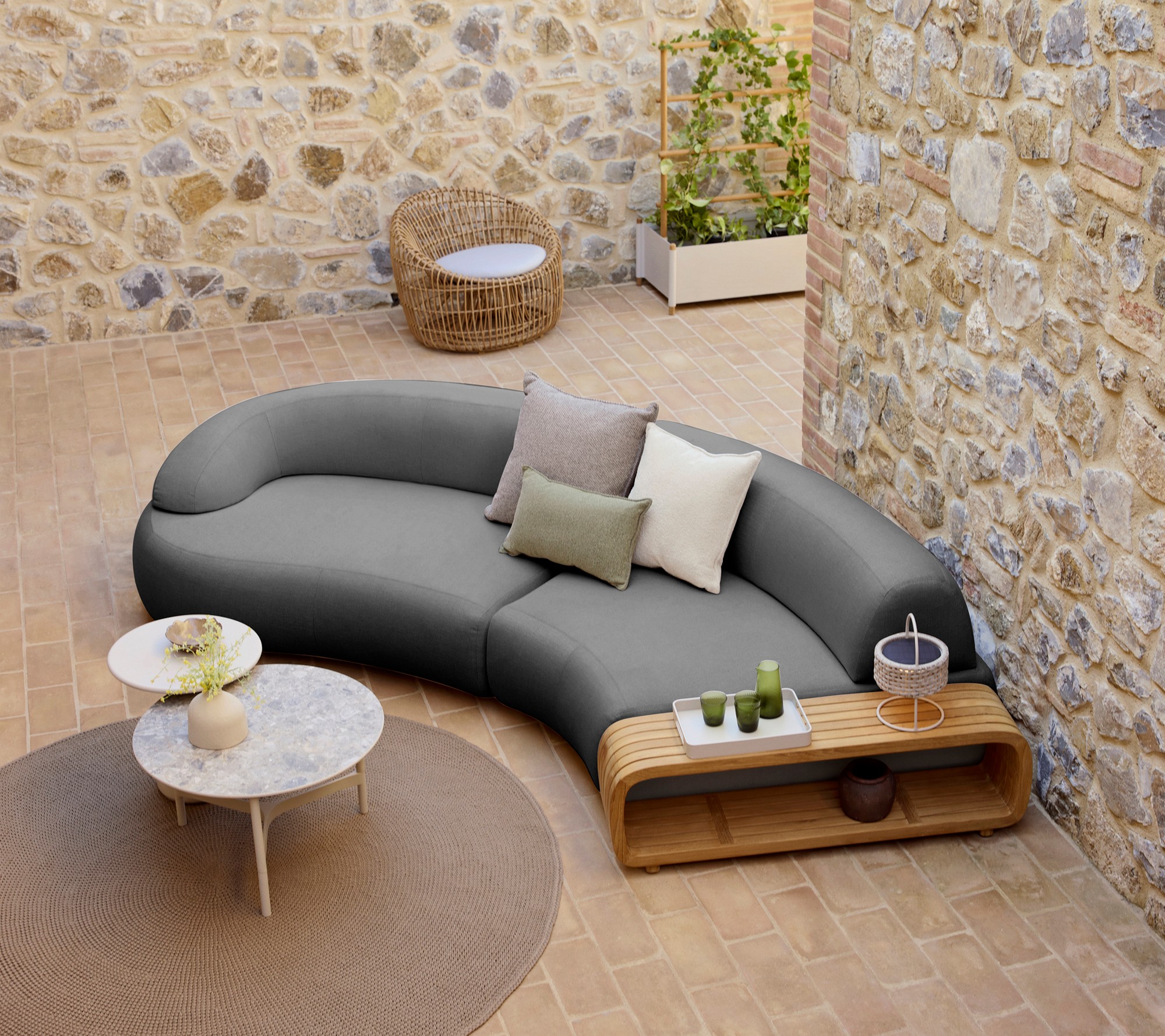 With its blend of comfort durability and understated elegance the Mellow Sofa transforms terraces balconies and gardens into serene outdoor living spaces.