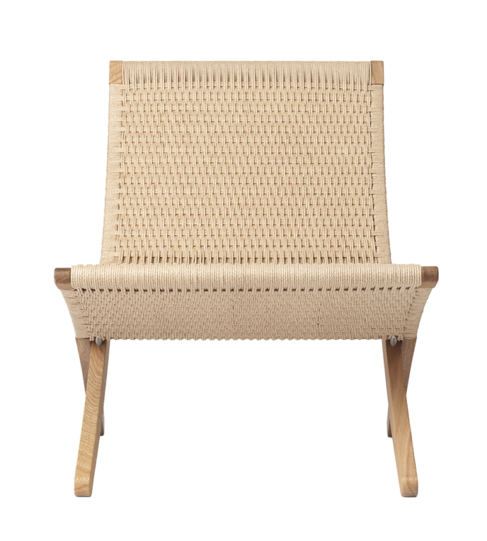 The MG501 Cuba Chair is a sculptural Danish folding chair in solid oak with woven cotton girths, lightweight and comfortable without sacrificing comfort.