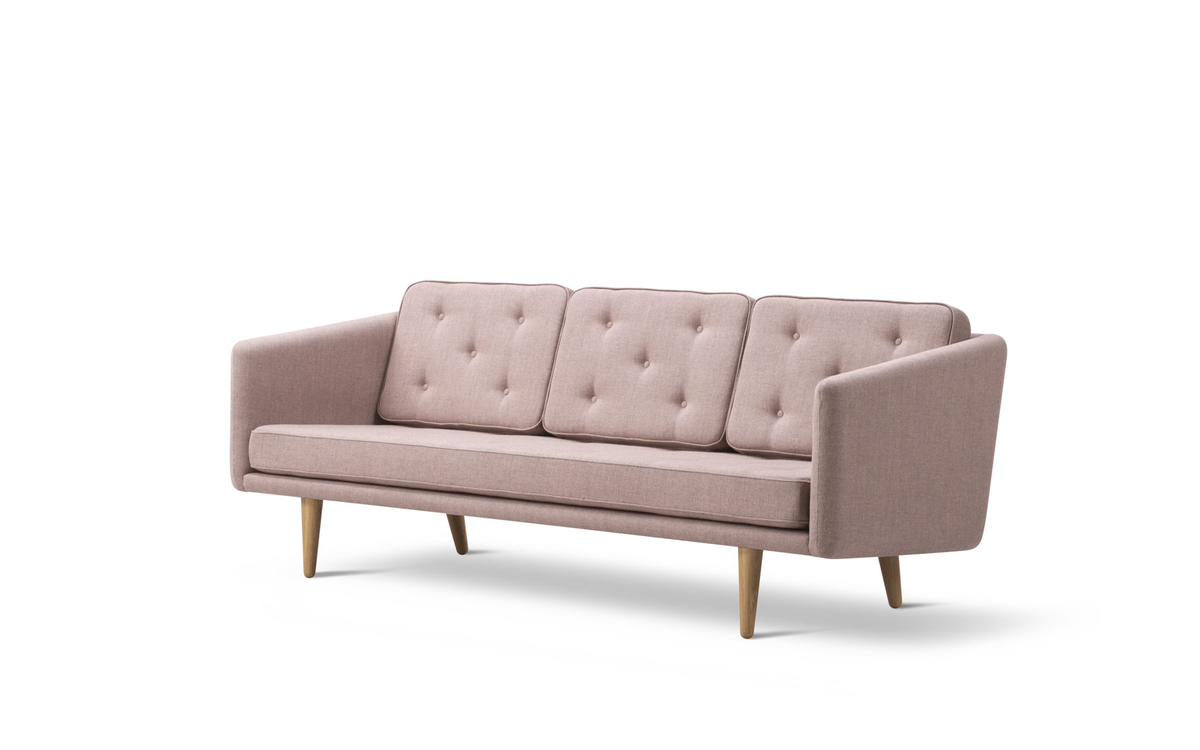 The No. 1 Sofa by Børge Mogensen is a Danish-minimalist classic, with a tightly upholstered frame, loose buttoned cushions for softness, and conical wooden legs that add warm vintage character.