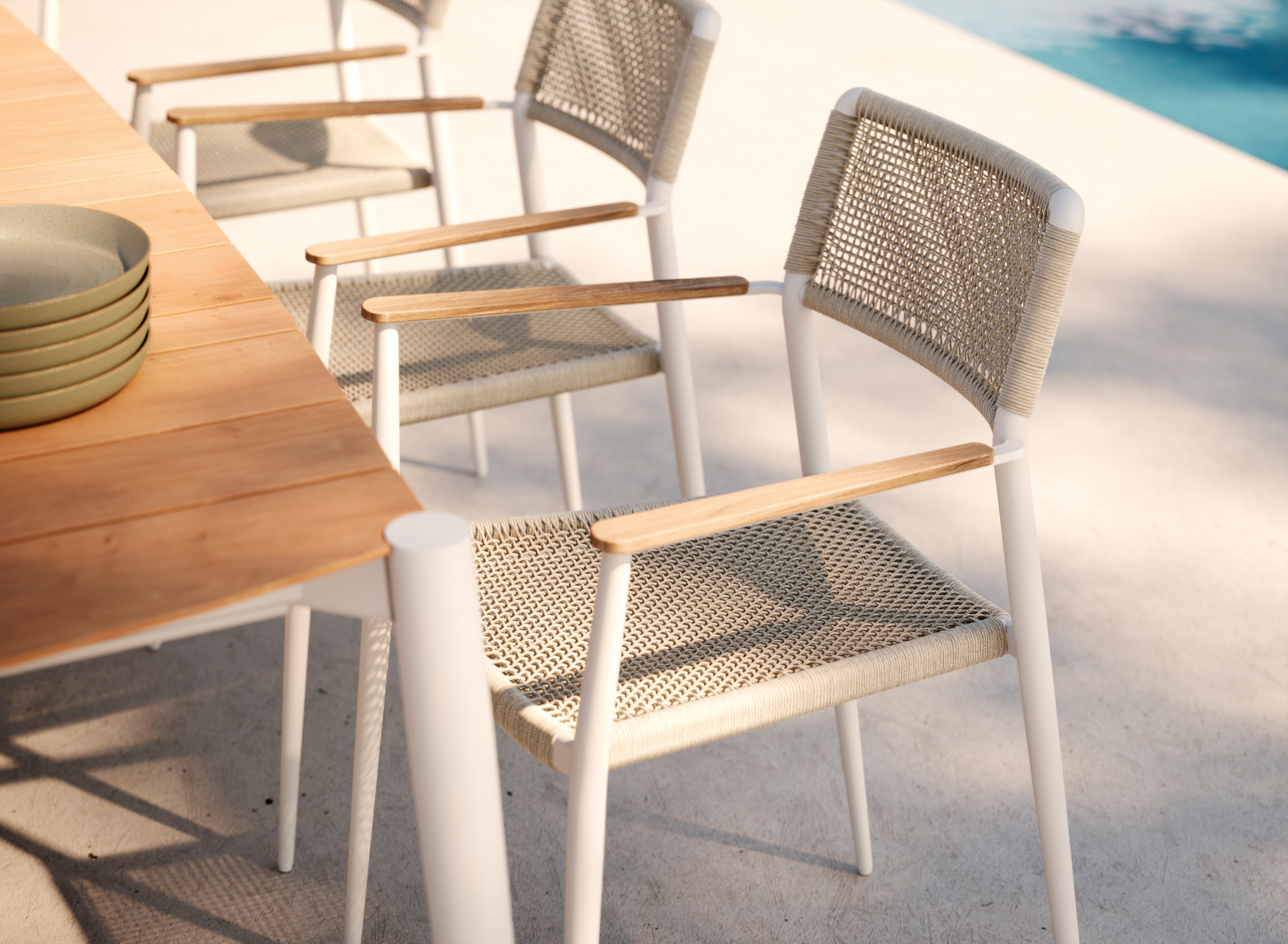 FPowdercoated Aluminium, Rope, Teak (armrests)