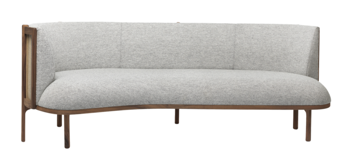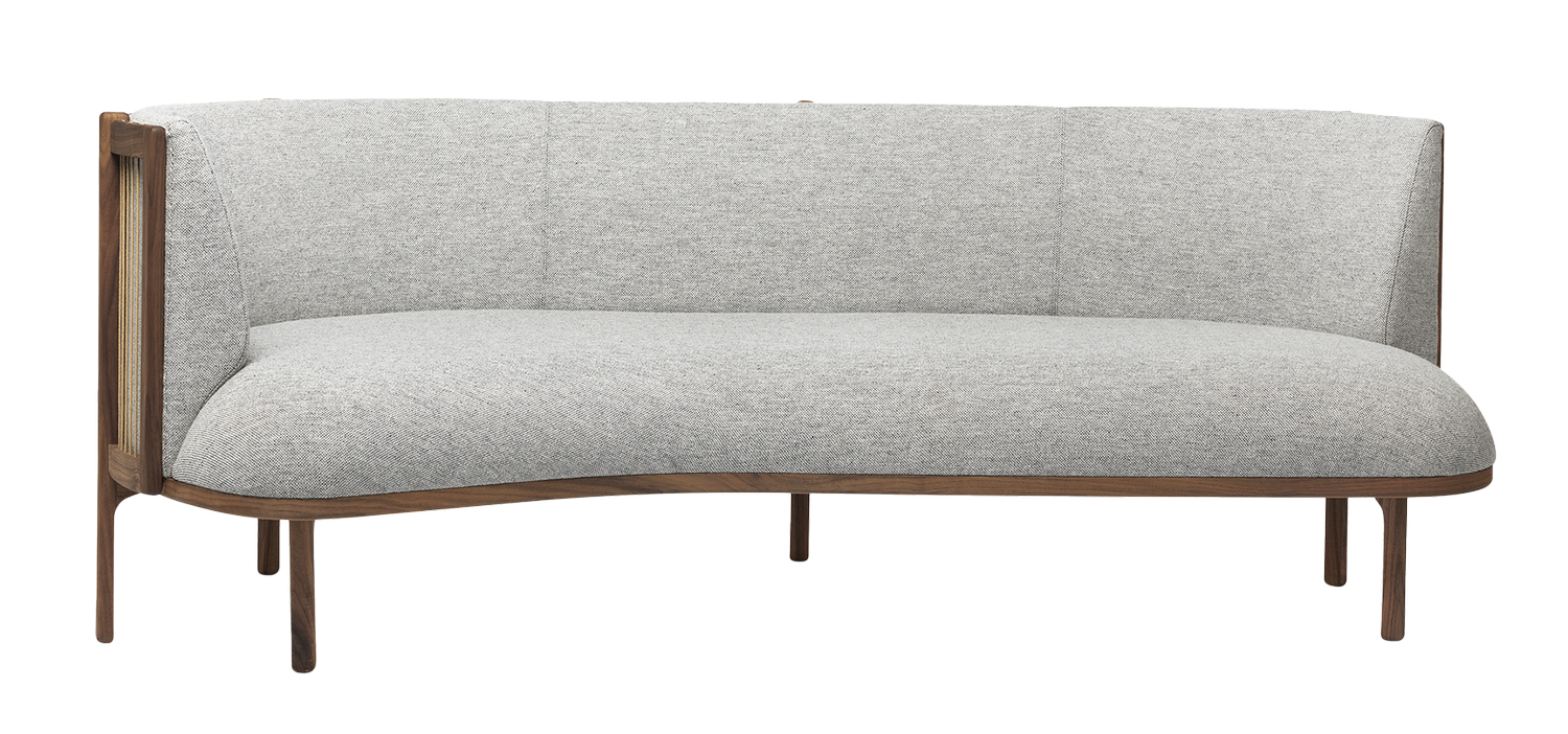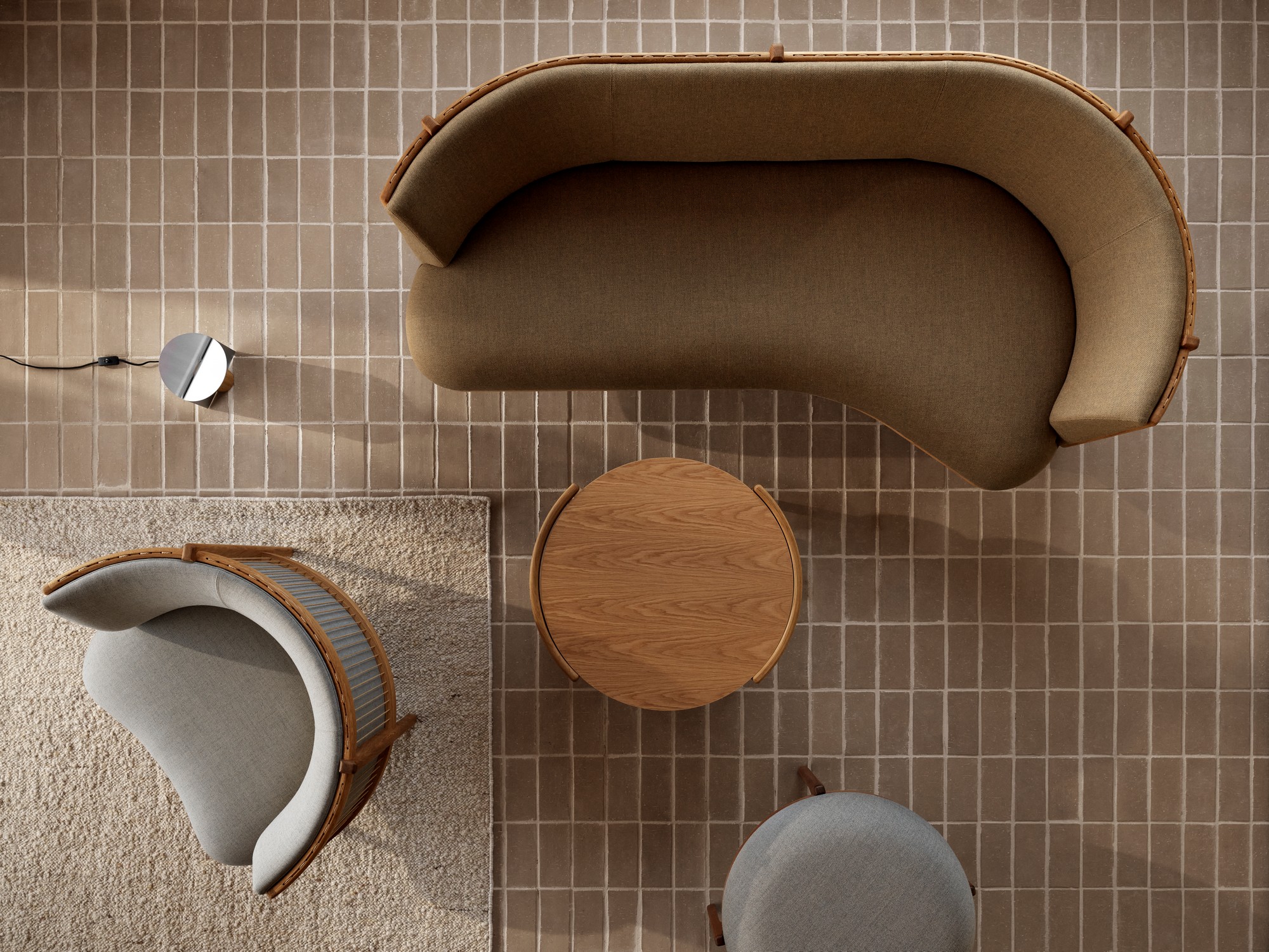 The Sideways Sofa is an asymmetric Danish sofa by Rikke Frost, blending steam-bent wood and woven paper cord with soft upholstery to create breathable, tactile comfort that’s built to age beautifully.