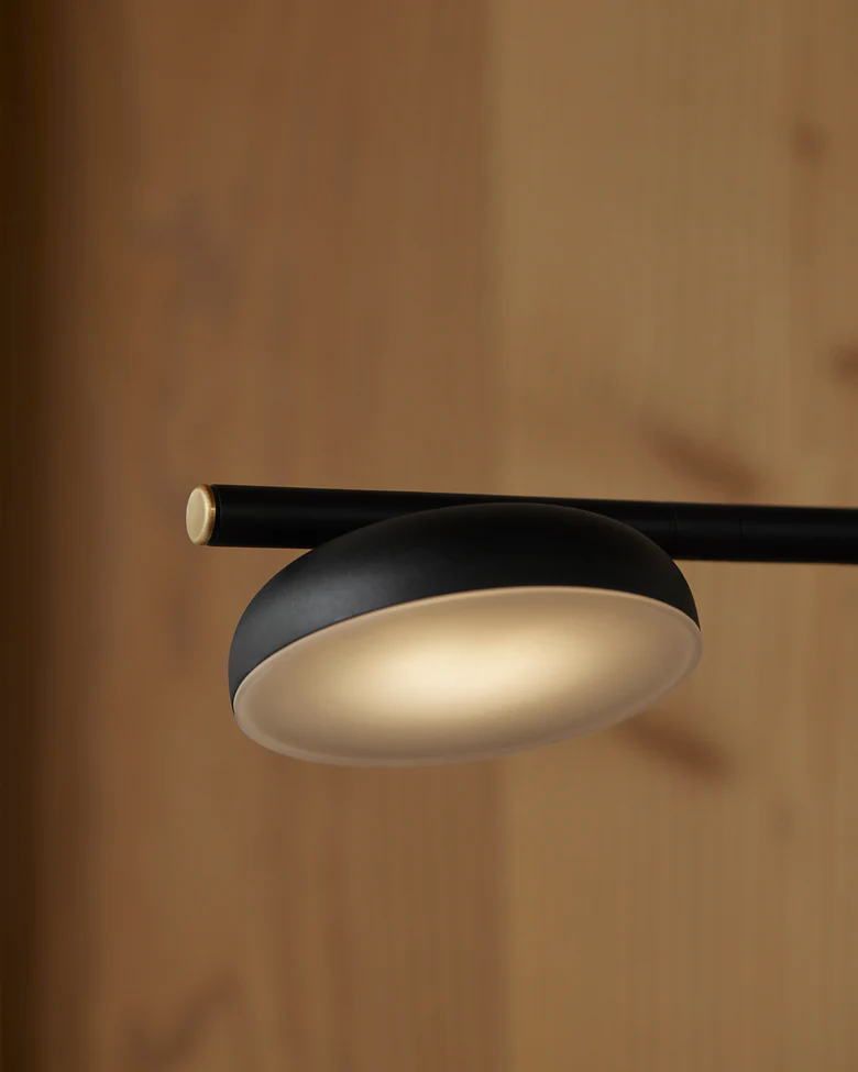 Featuring a playful “loop-de-loop” stem, the Salto lamp is as functional as it is whimsical. It offers a high degree of flexibility with a 360-degree rotating base and a tilting head, all controlled by an integrated touch dimmer for effortless adjustment.