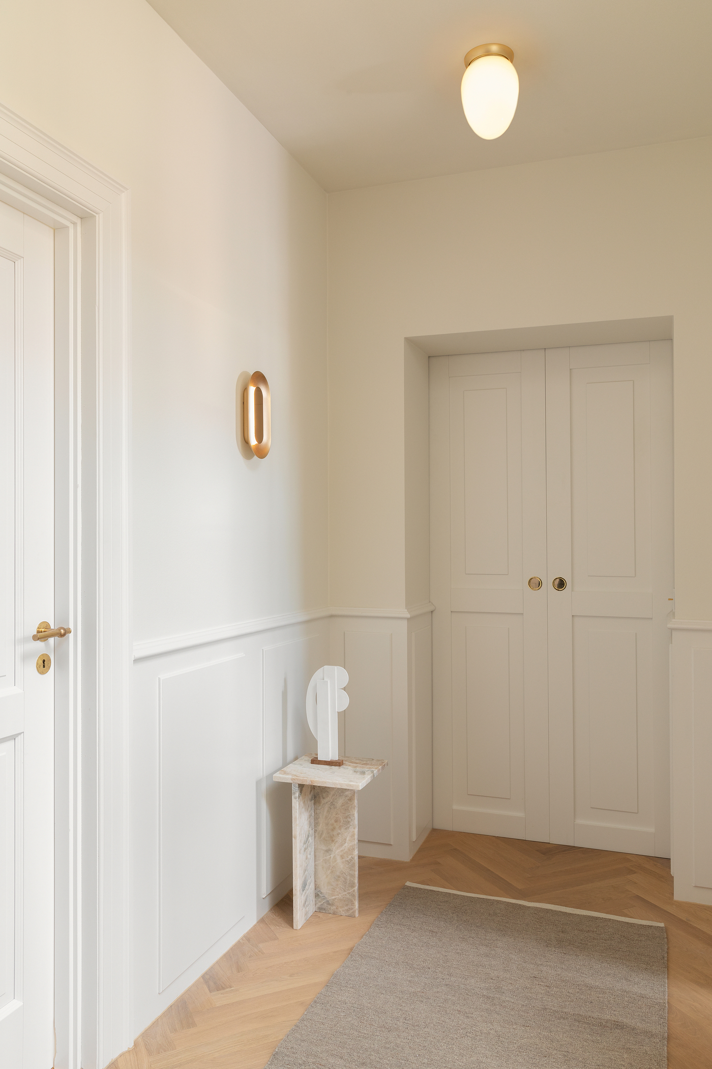 Its compact size makes it perfect beside a console table or as an accent along a hallway where it introduces a touch of contemporary artfulness without overwhelming the space. The interplay between the mirror effect and the satin metal gives the lamp a refined modern character while the soft light creates a calm inviting mood. Thoughtfully designed by Rick Tegelaar, the Sasi Wall Lamp blends decorative impact with everyday functionality making it a stylish addition to any modern interior.