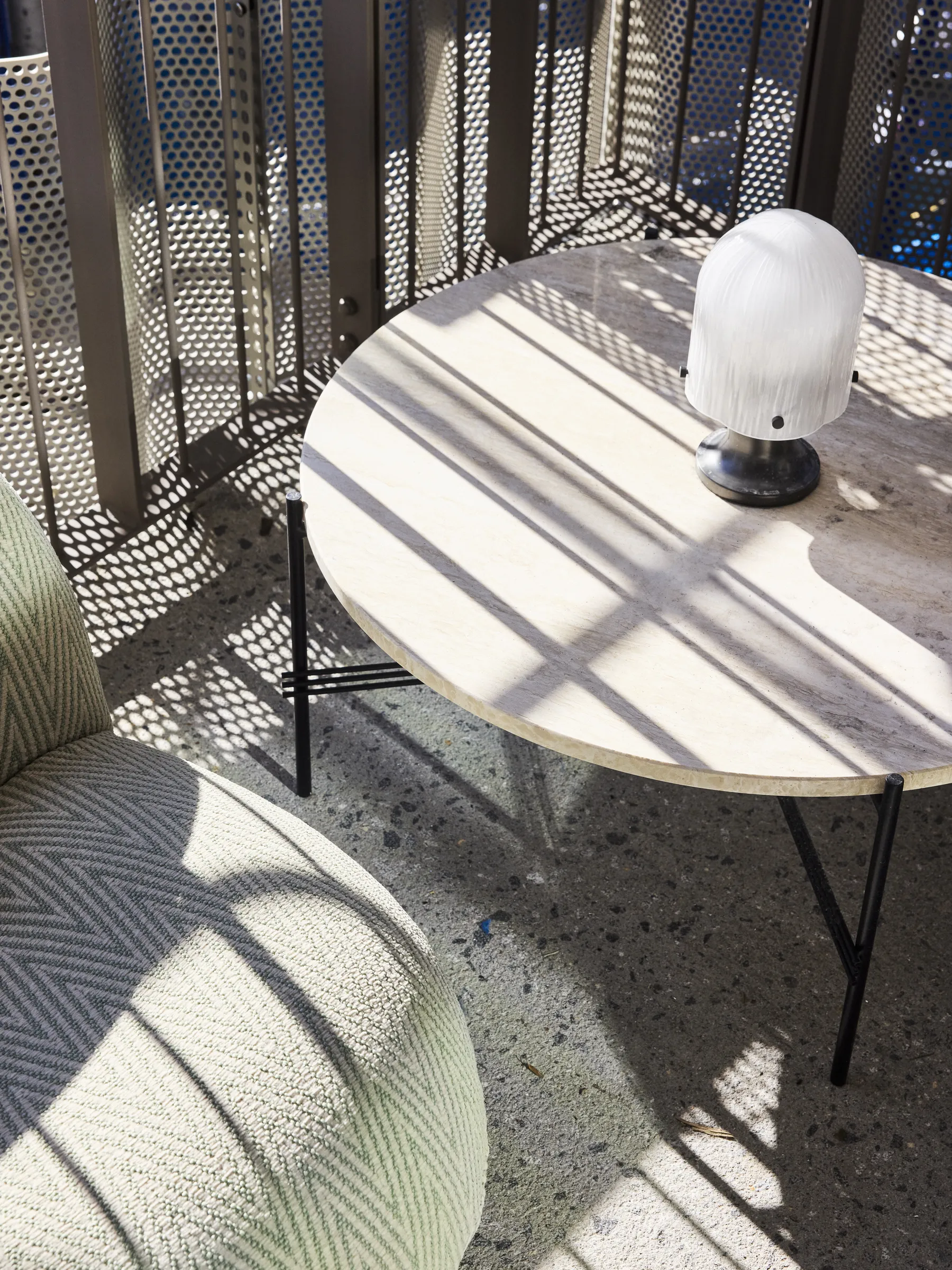 The Seine Portable Lamp is a cordless, atmospheric light that captures the ethereal interaction between light and water. This portable edition is designed for effortless movement between interior sanctuary and outdoor landscape.