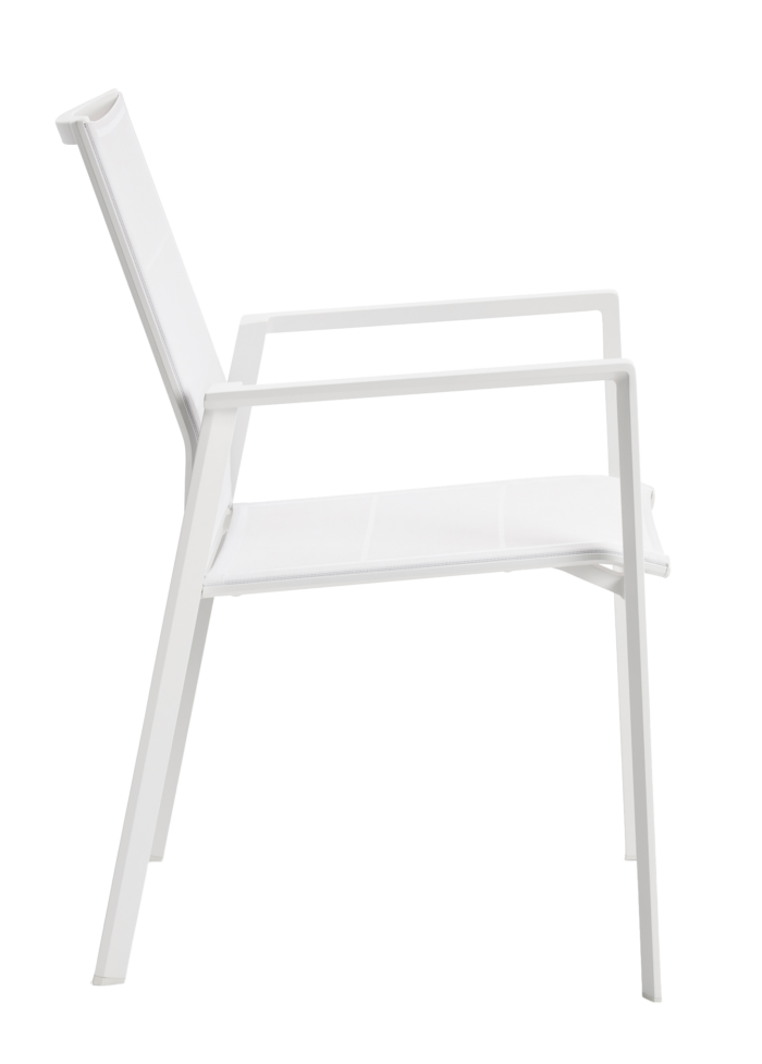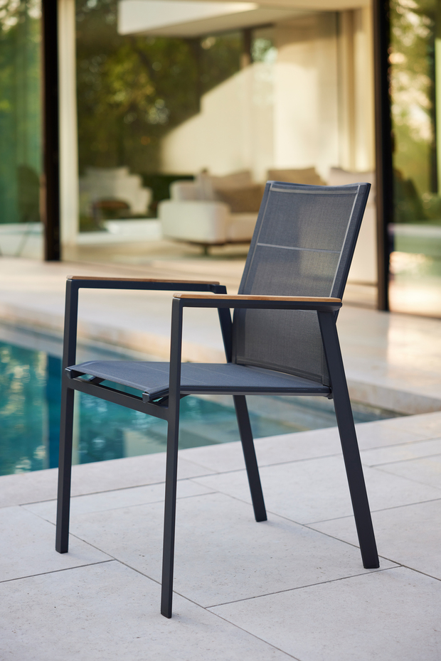 Selecta Outdoor Dining Chair captures modern outdoor design that feels honest, calm and elevated. The minimalist frame, crafted from powder coated aluminium, is sturdy yet beautifully light and easy to move and as an added bonus the chairs are stackable for easy storage. The seat is slightly springy, breathable, and satisfyingly cool when you first sit down. It holds its shape through humidity and sun, resisting water, UV and moisture naturally.