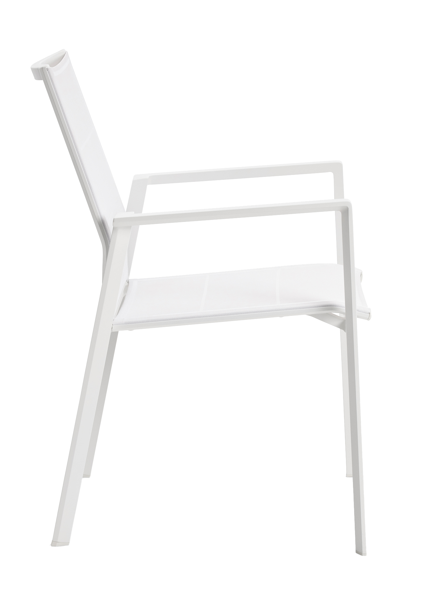 The Selecta Outdoor Dining Chair is a calm, modern dining chair with a powder-coated aluminium frame and a cool, springy, breathable seat.