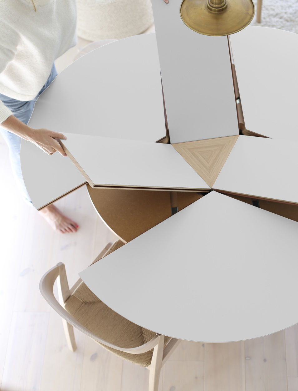 This patented extension system is beautifully intuitive. Open the center and apply light pressure to reveal the hidden leaves that unfold smoothly from the base. The mechanism feels precise and satisfyingly effortless, turning a compact table into a generous setting in moments.