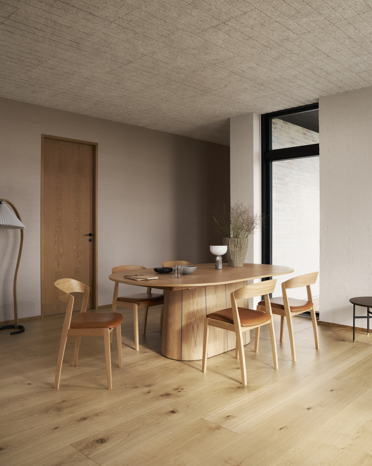 The rounded backrest offers generous support, almost hugging your posture in a comfortable, relaxed way. Paired with a softly upholstered seat, the 825 makes long dinners feel easy and unhurried. The silhouette is clean and inviting, so it blends beautifully with a wide range of dining tables and is simple to mix with other chairs if you like a curated look.
