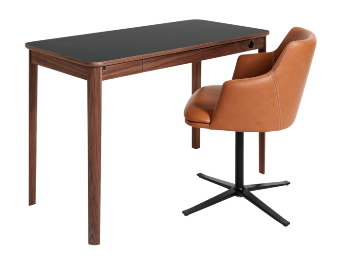The Skovby 131 Home Desk is a refined, Scandinavian-style workspace balancing a soft, rounded aesthetic with discrete technical features.