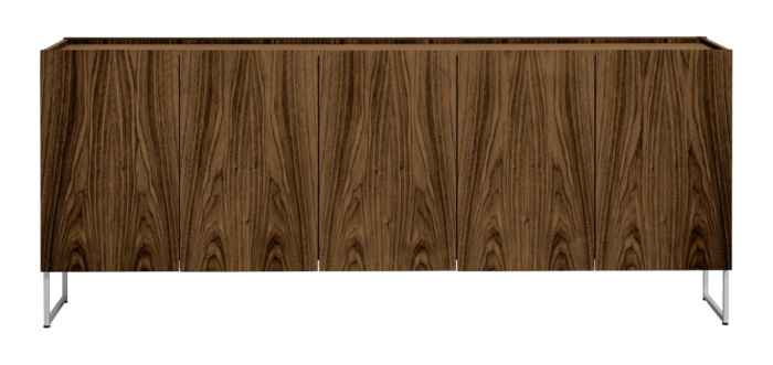 5 doors, 5 short shelves, 1 long shelf, 1 long drawer. Available with plinth or legs.