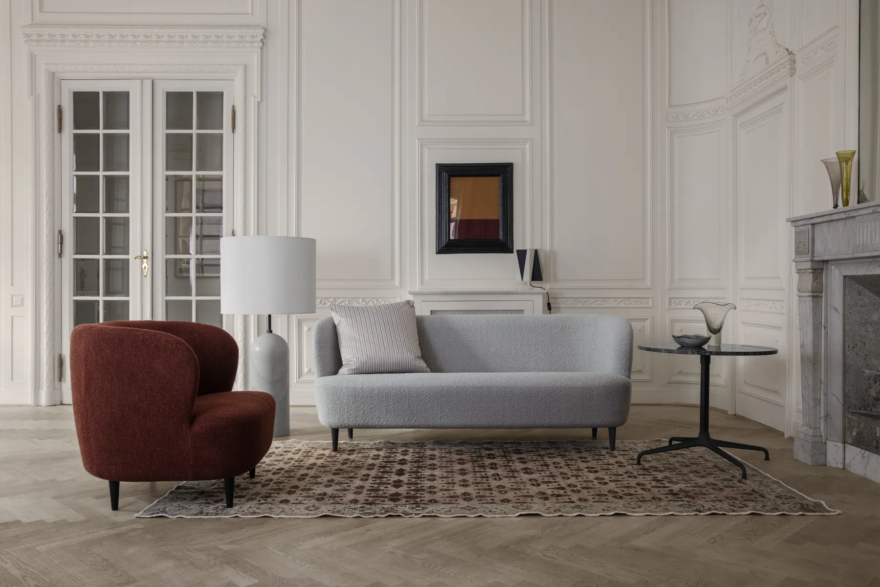 The Stay Sofa by Space Copenhagen is defined by a fluid, continuous silhouette that resembles a single pencil stroke, this sofa is specifically designed to embrace the user. Its compact proportions make it an ideal choice for smaller apartments.