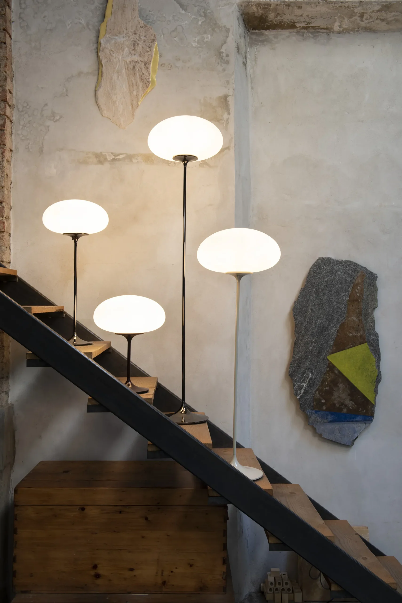 The iconic Stemlite is perfect for bedside or side tables. It maintains the elegant, simple design where the sphere sits atop the stem, providing a soft, non-directional light. It embodies the essence of the Space Age design of the 1962