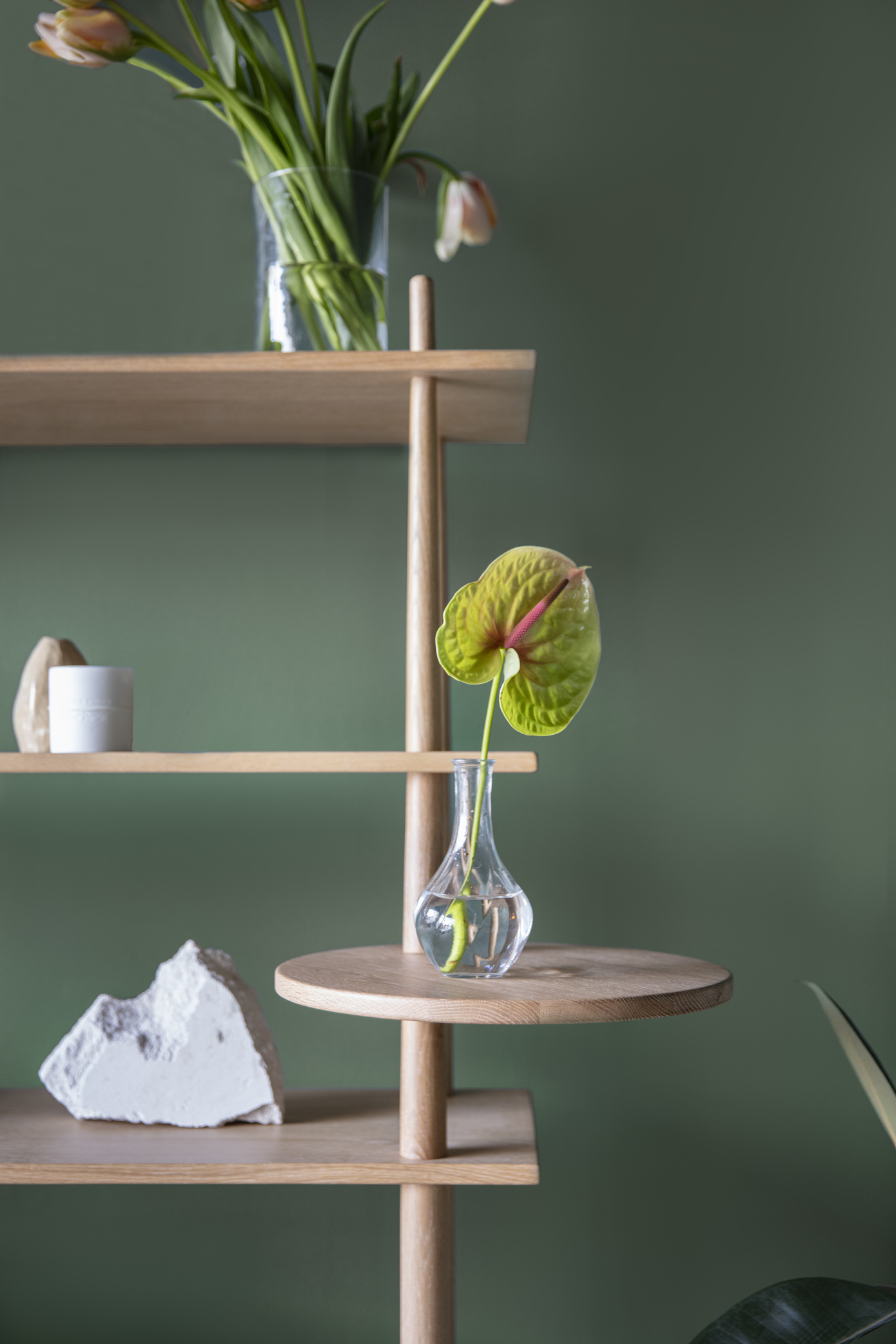 Stories is a flexible framework for your life. Featuring four shelves and a series of optional accessories—such as glass bowls and side tables—it allows you to mix open display with hidden storage. The daintiness of its legs and the warmth of the oak reflect a classic Copenhagen aesthetic.