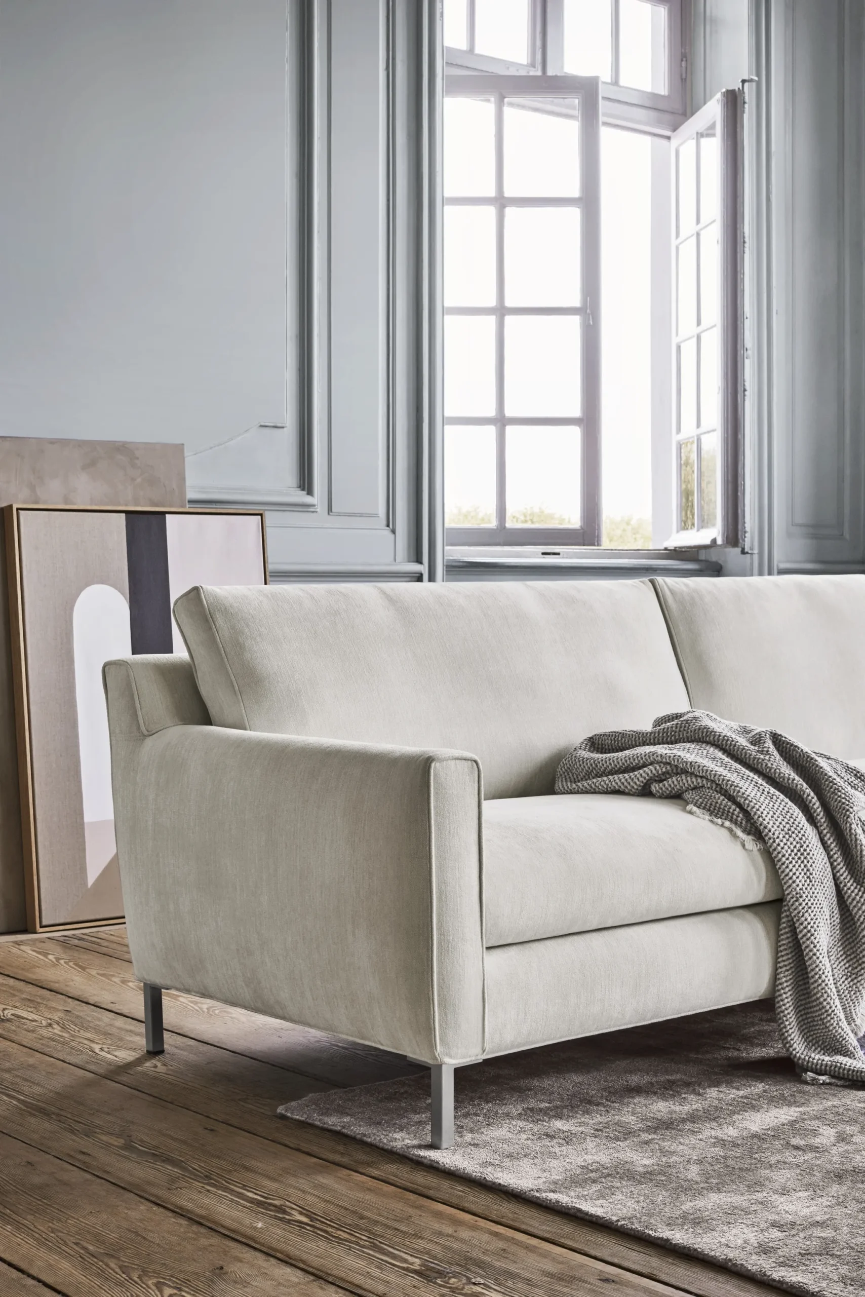 Modularity: Built from a wide range of sections and chaise longs. Frame: Solid wooden frame with a nozag spring system. Cushions: Foam core and fiber-fill or down/duck feathers. Legs: Available in stainless steel or brushed steel. Upholstery: Choice of fabrics and leathers, often with a removable cover.