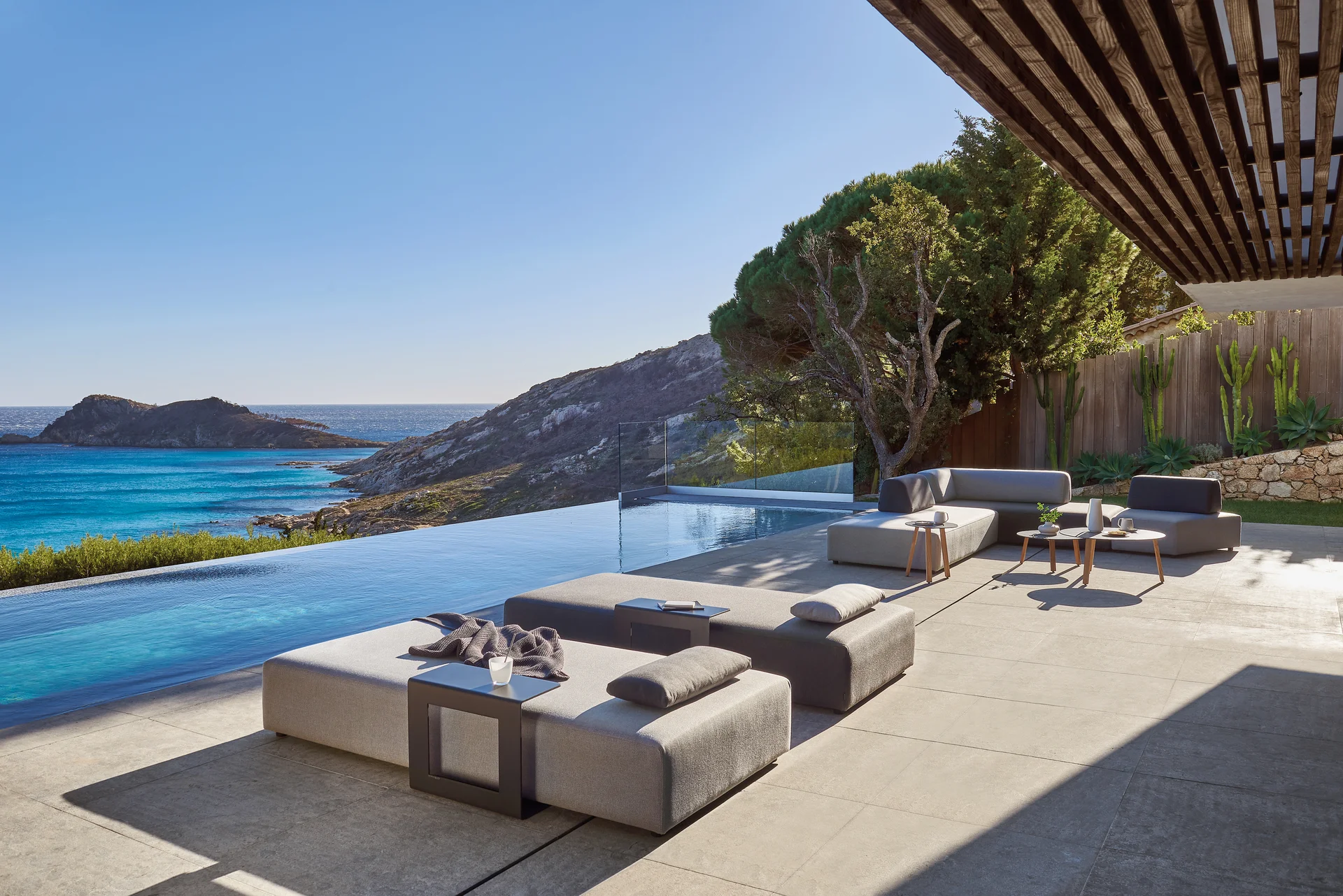 A dynamic and modular “island” system that uses geometric shapes to create bespoke relaxation zones.