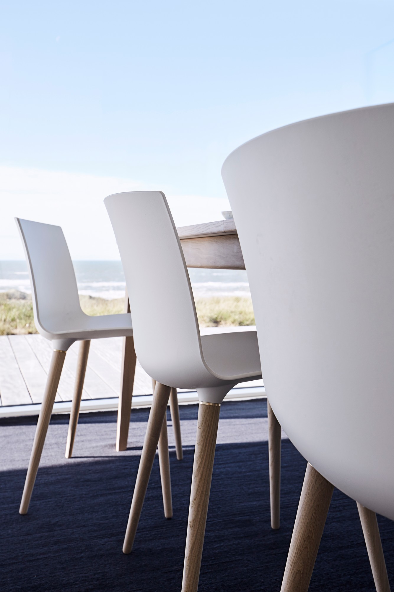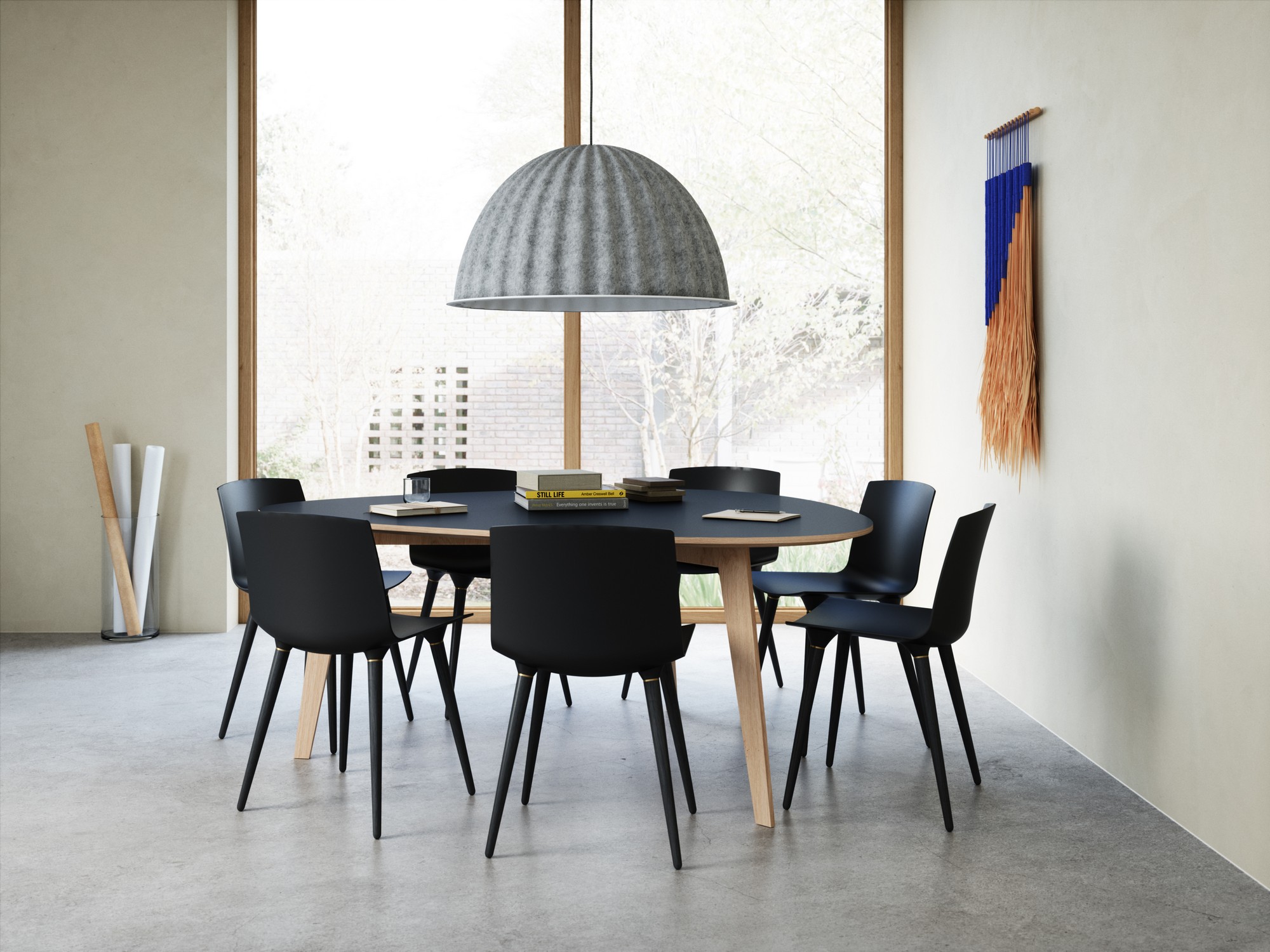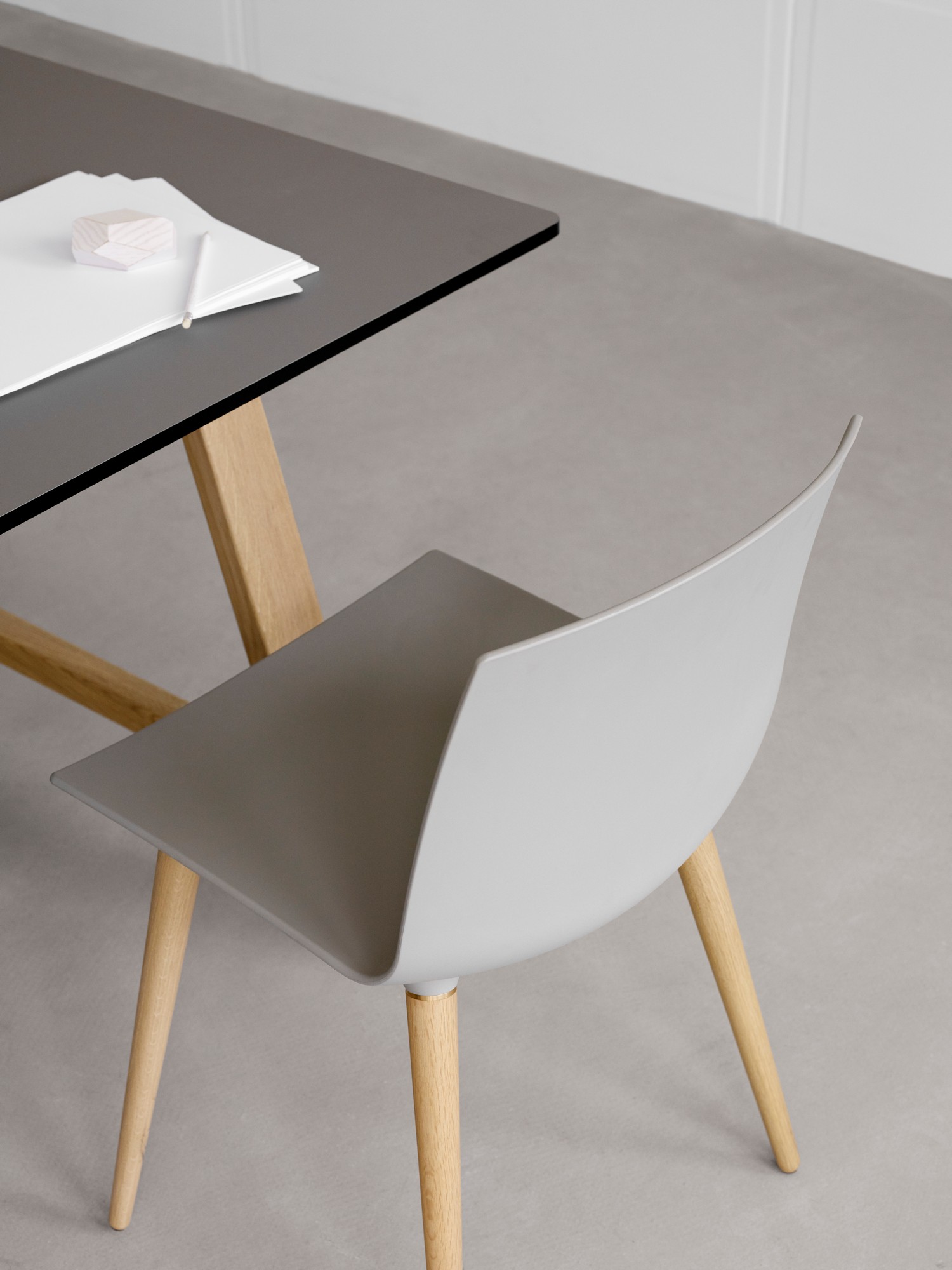 Wood leg choices: Black, oak matt lacquer, oak white matt, walnut.