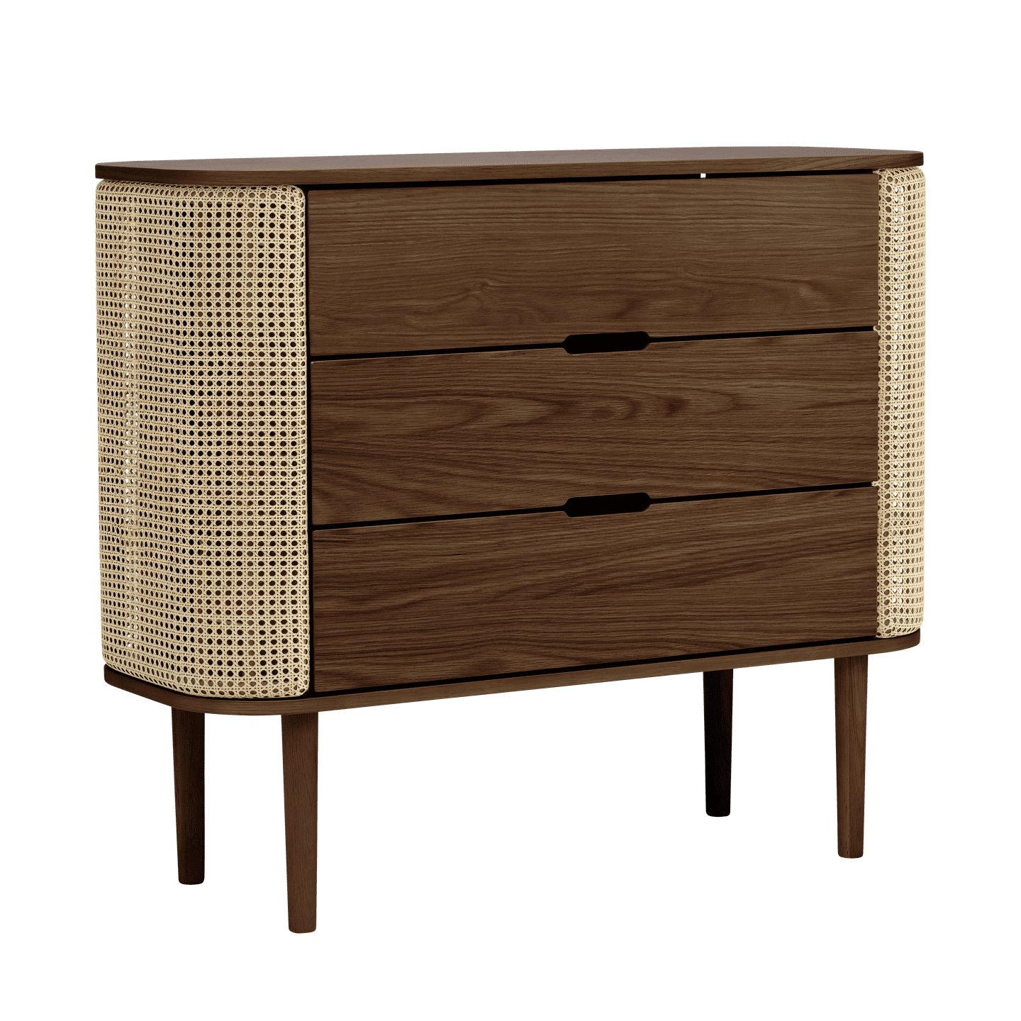 A sophisticated dresser combining large drawers with elegant side compartments.