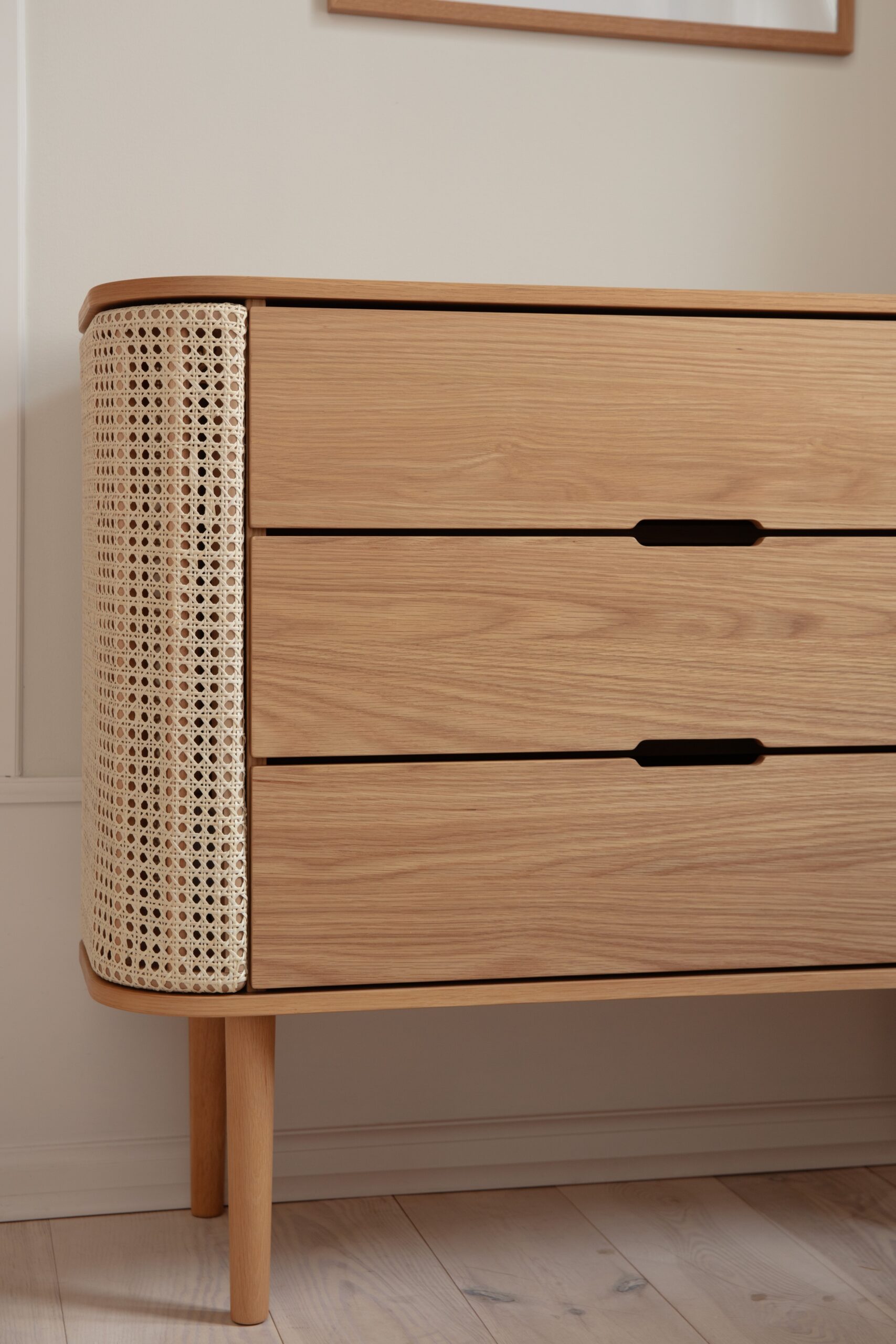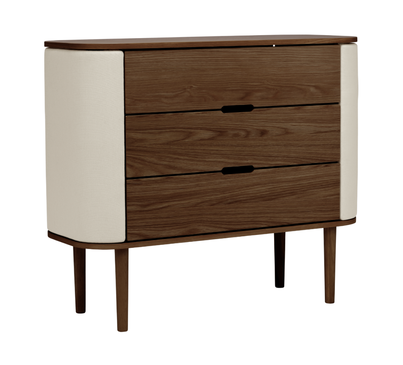 The curved form creates a sense of visual softness and the seamless drawers keep the look uncluttered. With its blend of craftsmanship functionality and timeless Scandinavian character, the Treasures Dresser becomes a versatile piece that brings harmony and gentle luxury to modern homes.