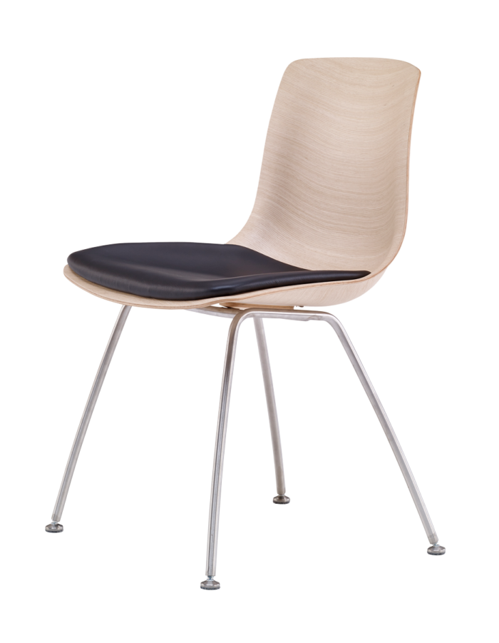 Wood Finishes: Lacquered, Oiled, Black-stained. Seat: Upholstered in Leather (Naver Select, Semi-Aniline, Aniline) or Fabric. Base: GM 315: Stainless Steel. GM 316: Black Powder Coated Steel.