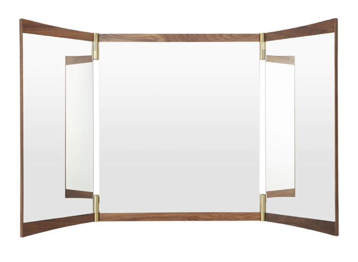 The Vanity Mirror Collection reimagines the traditional vanity mirror with adjustable panels and refined materials.