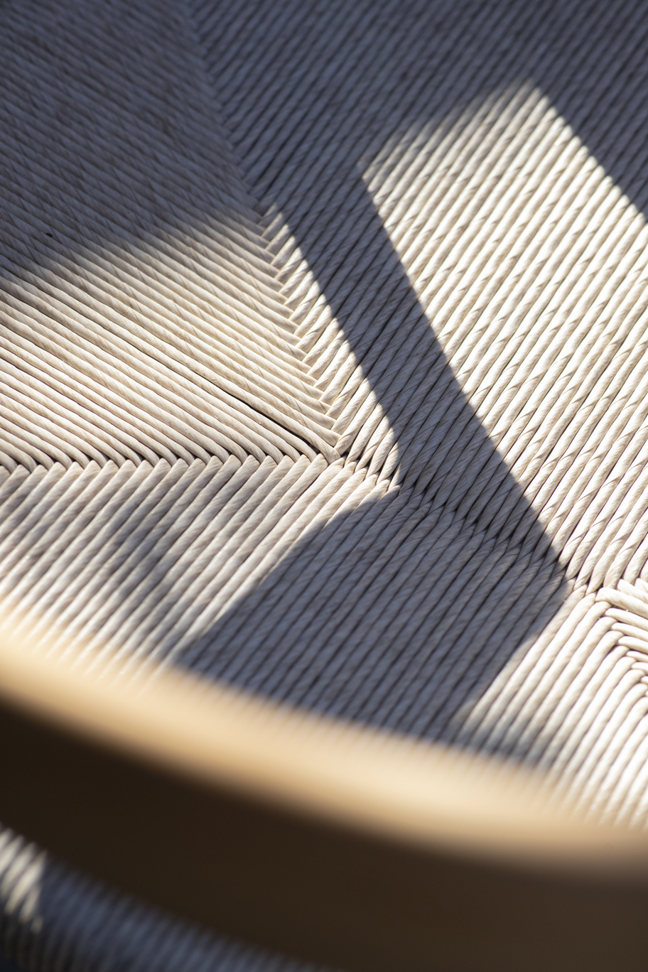 The Manutti Yiko Dining Chair blends coastal elegance with outdoor durability, pairing a natural teak frame with handwoven twisted Chalk wicker and a plush cushion for breezy, long-meal comfort.