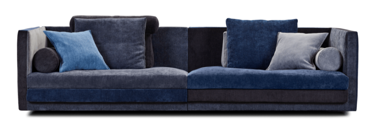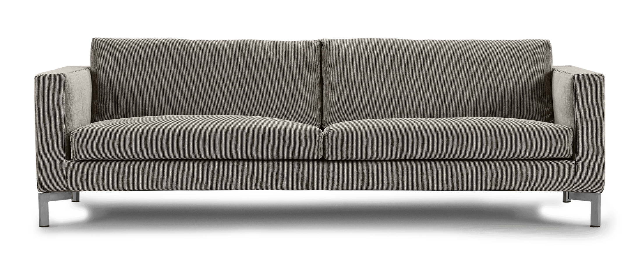 Cushions: Seat cushions are made of two layers of pressed polyurethane foam topped with a layer of down. Size Options: Available in various sizes and modular configurations, including 100 and 110 cm depths, plus an optional footstool. Legs: Typically angled stainless steel. Upholstery: Available in a variety of materials and colors (fabric and leather).
