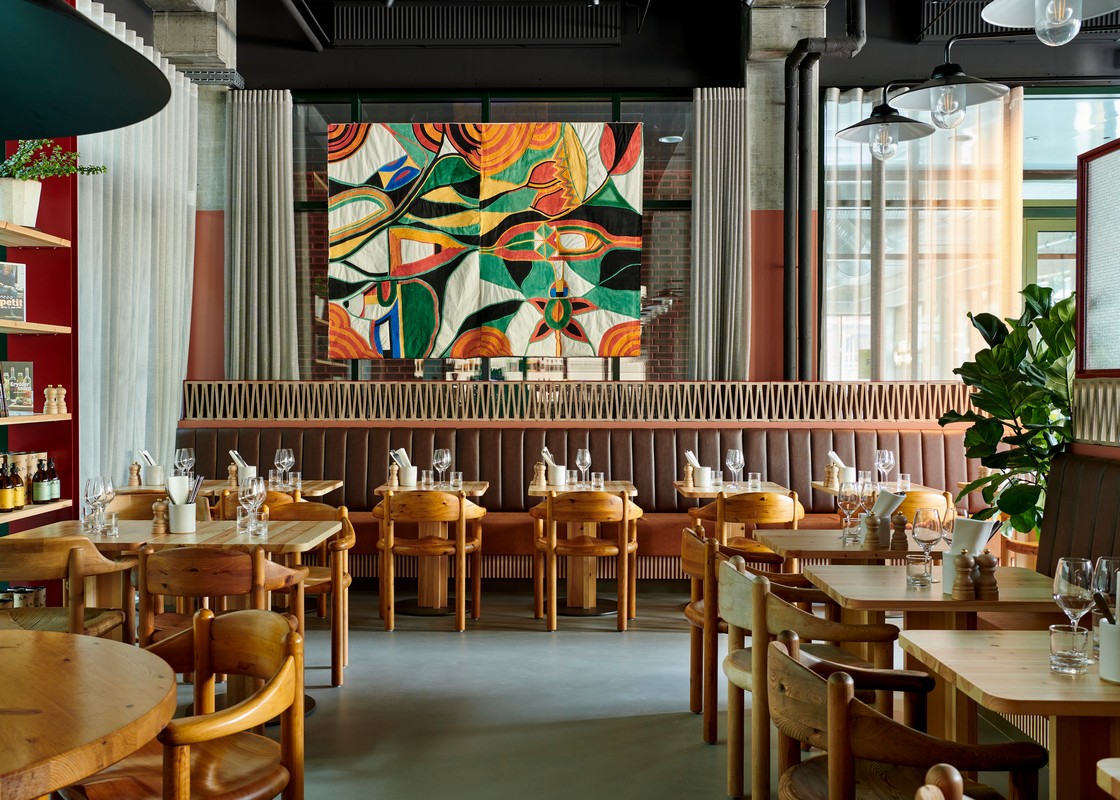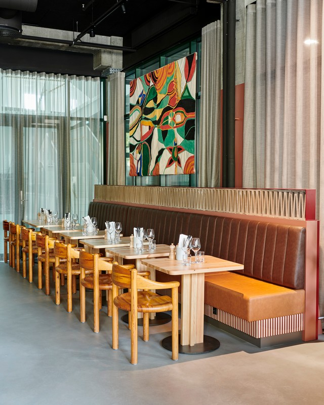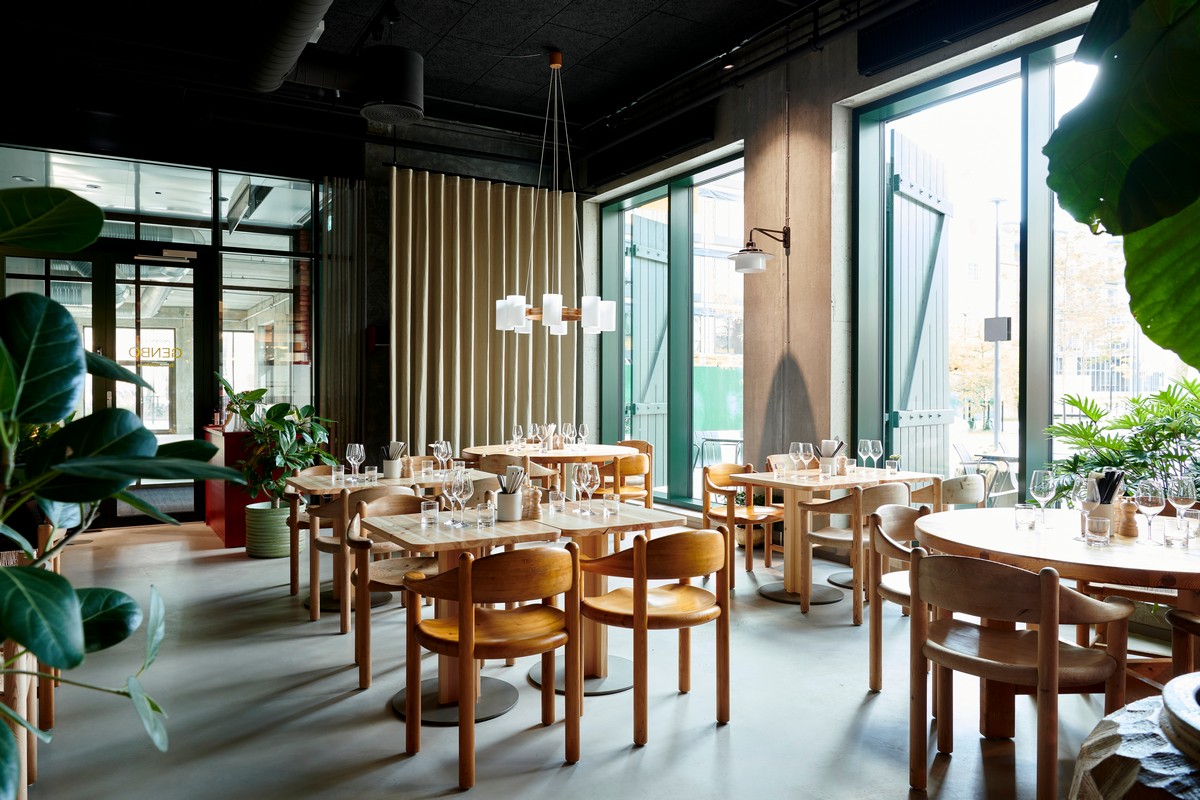 Genbo in Carlsberg Byen brings together the eclectic spirit of Copenhagen’s old and new architecture, blending raw steel, exposed brick, and accents of red and green. To shape this warm and engaging environment, restaurateur Adam Aaman and design studio All That Matters centered the space around Rainer Daumiller’s 1970s pine armchair, a bold statement of Danish craft that pairs naturally with Genbo’s industrial surroundings.
